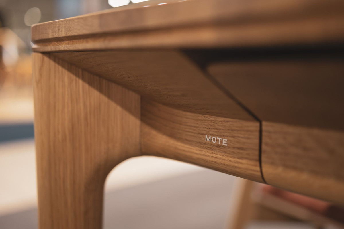Prostota, trwałość, możliwości adaptacyjne – to cechy definiujące markę MOTE. Sama nazwa pochodzi od norweskiego słowa møte, czyli „spotkać się”. Premiera marki odbyła się w czwartek, 23 października, podczas drugiego dnia targów. Na stoisku pojawili się dziennikarze, miłośnicy designu i architekci, a ich obecność potwierdziła, że wciąż istnieje duże zainteresowanie prostym, minimalistycznym designem oraz meblami z naturalnych, szlachetnych materiałów. Podczas prezentacji Kamil Pączkowski, współzałożyciel dys.studio i twórca strategii MOTE, opowiedział