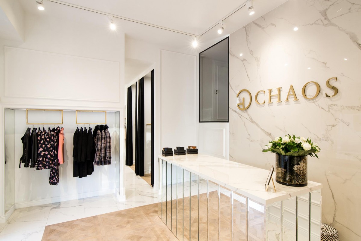 CHAOS to marka, która słynie z nietuzinkowych projektów, unikatowych wzorów i luksusowych tkanin. Wnętrze butiku musiało być zgodne z filozofią marki. Założeniem i wizją architekt Olgi Nijaki było stworzenie niepowtarzalnej przestrzeni, która w subtelny sposób stanie się ekskluzywnym, a jednocześnie niedominującym tłem dla charakterystycznych kolekcji Marty Boliglovy.
