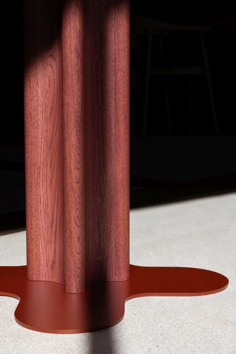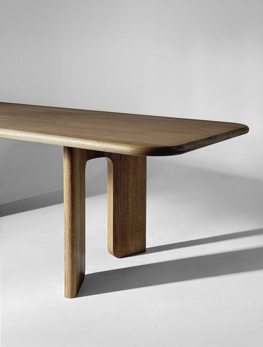 Monolityczny stół MOMMO o płynnej linii i rzeźbiarskim wyrazie. Subtelnie zaoblone krawędzie nadają mu miękkości, a zwarta konstrukcja gwarantuje wyjątkową stabilność. Dostępny jest w trzech wariantach blatu: okrągłym, prostokątnym i stadionowym.