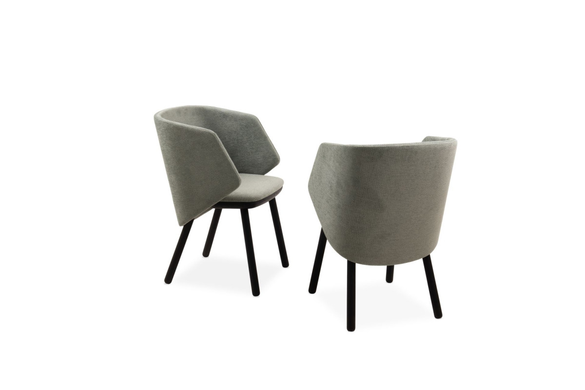 Krzesło IKKOKU łączy nowoczesną formę z komfortem użytkowania. Charakterystyczne, profilowane oparcie zapewnia poczucie otulenia. Dostępne są dwa warianty: z klasycznym oparciem oraz z oparciem zintegrowanym z podłokietnikami. Szeroki wybór tkanin pozwala dopasować mebel do różnych aranżacji – od wnętrz prywatnych po przestrzenie publiczne.