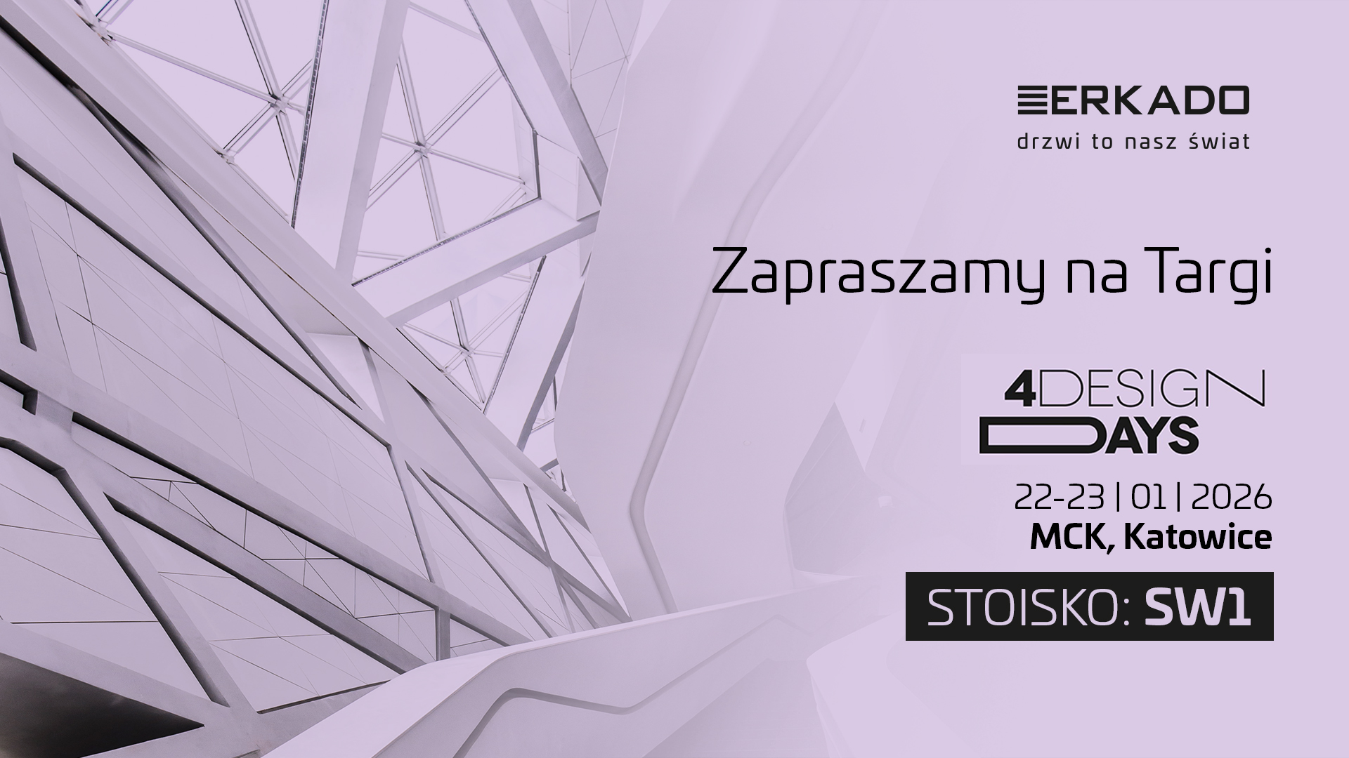 Targi 4 Design Days 2026 będą doskonałą okazją do bezpośredniego spotkania, rozmów o trendach, technologiach oraz możliwościach współpracy projektowej. ERKADO zaprasza architektów, projektantów wnętrz oraz partnerów biznesowych do odwiedzenia stoiska SW1, gdzie zaprezentowane zostaną najnowsze produkty, rozwiązania techniczne oraz podejście marki do wspólnego tworzenia nowoczesnych i funkcjonalnych przestrzeni.
