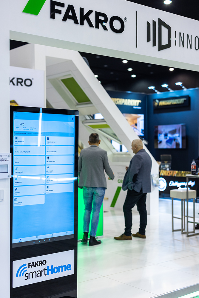 Na targach 4DD, które odbyły się w dniach 26-29 stycznia w Międzynarodowym Centrum Kongresowym w Katowicach, stanowisko FAKRO przybrało elegancką formę i zachwycało designem. Stolarka pionowa INNOVIEW, w tym drzwi przesuwne HST narożne, brama garażowa, markizy przeciwsłoneczne VML Solar zaprezentowane zostały w jednej linii stylistycznej. Ponadto goście odwiedzający targi mogli zobaczyć okno dachowe nowej generacji GREENVIEW z zamontowaną roletą ARZ Komfort. Warto zaznaczyć, że wszystkimi produktami w wersji elektrycznej można sterować za pomocą smartfona z wykorzystaniem Wi-Fi.