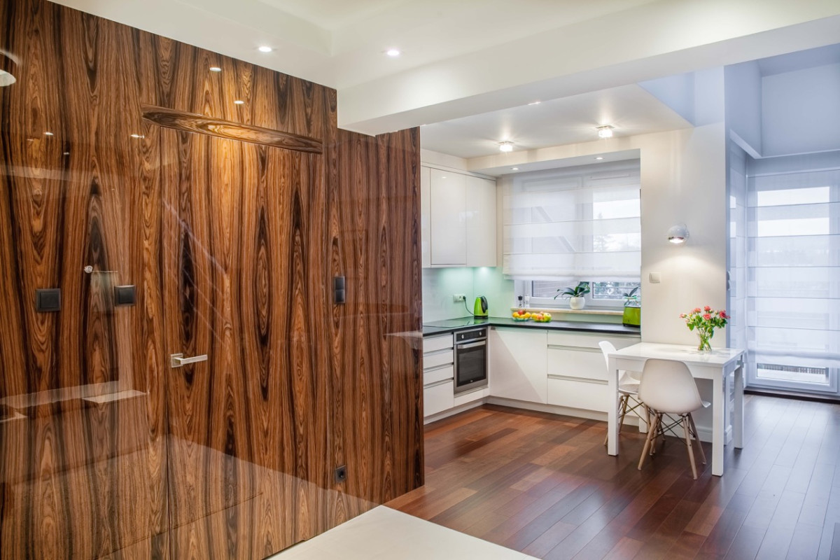 Miało być nowocześnie, minimalistycznie, ale i przytulnie. Takie oczekiwania, co do wystroju wnętrz miała inwestorka. Do współpracy przy jego projekcie jego zaprosiła więc architekt Annę Łukszę z pracowni She-Art, która w swych realizacjach doskonale łączy potrzeby użytkowników z estetyką i funkcjonalnością. Tak było także w tym przypadku. Architektka, wsłuchując się w oczekiwania klientki, zaprojektowała nowoczesną przestrzeń do życia, nie pozbawioną jednak odrobiny ciepła w postaci drewna palisandrowego, które pojawiło się tu na życzenie inwestorki.