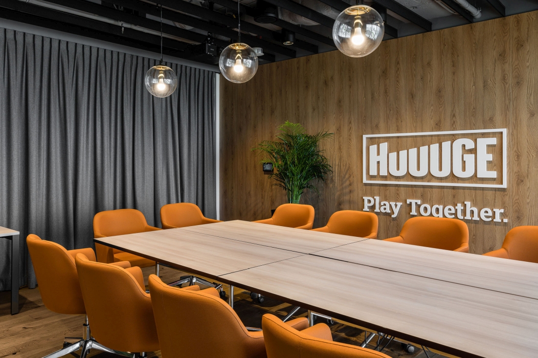 Huuuge Games to globalny producent i wydawca gier mobilnych, zaprojektowanych w oparciu o motto firmy „grajmy razem”. Ich społeczny charakter opiera się przede wszystkim na umożliwieniu graczom rozmawiania, grania i rywalizacji między sobą w czasie rzeczywistym. Do flagowych tytułów marki należy Huuuge Casino i Billionaire Casino. Koncepcja grania razem z innymi, która ma kluczowe znaczenie dla podejścia firmy do projektowania gier, stała się też podstawą aranżacji biura firmy w centrum Warszawy, za które odpowiadają architekci z BIT CREATIVE. Urządzone w stylu soft-loft, na wzór typowych przestrzeni dla start-upów, sprzyja kreatywnej pracy, ale też budowaniu minispołeczności wśród pracowników.