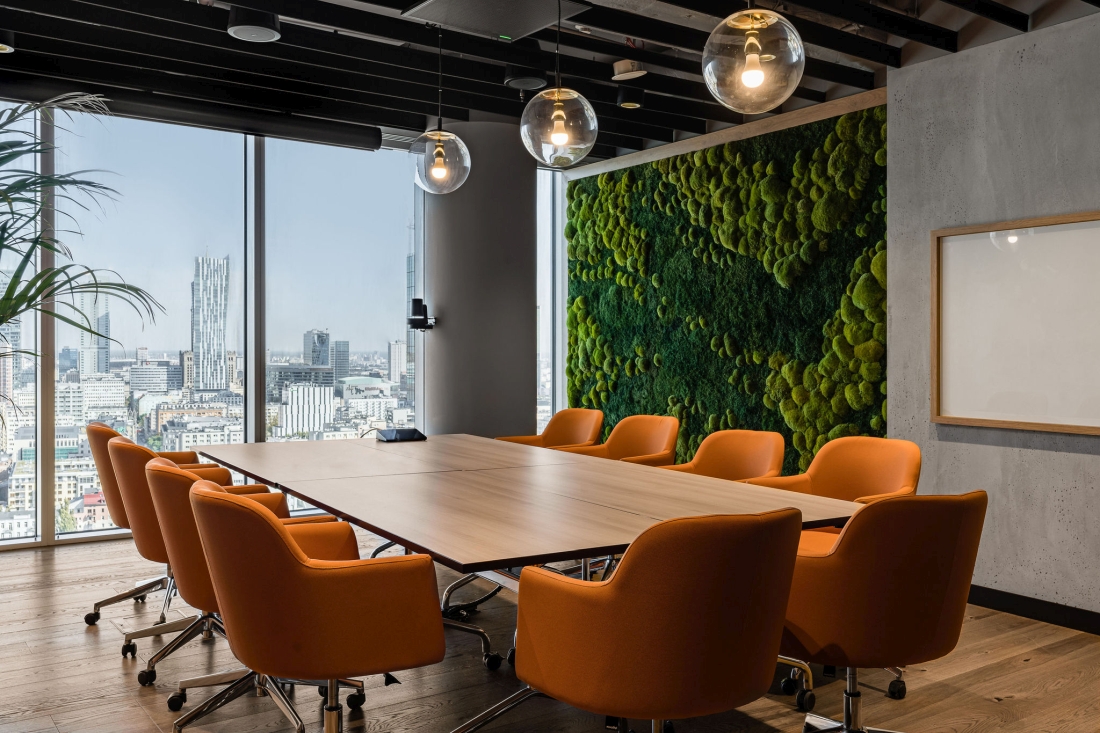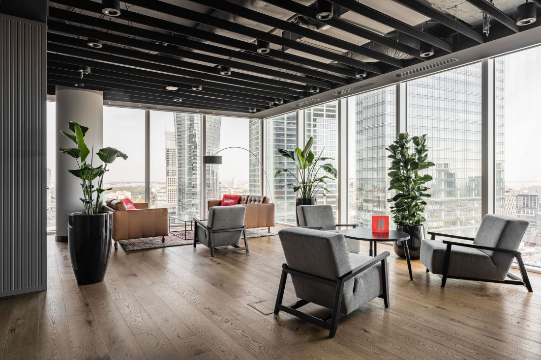 Każdy zespół ma także dedykowaną przestrzeń do pracy, a do dyspozycji wszystkich pracowników jest szereg sal konferencyjnych, centralnie usytuowana kuchnia z relaksującą strefą wypoczynkową oraz strefa fitness. Dodatkowo recepcja, zlokalizowana na 21. piętrze, z przestronną poczekalnią i samoobsługowym punktem kawiarnianym, oferuje nie tylko pyszną kawę, ale również zapierający dech w piersiach widok na panoramę Warszawy.