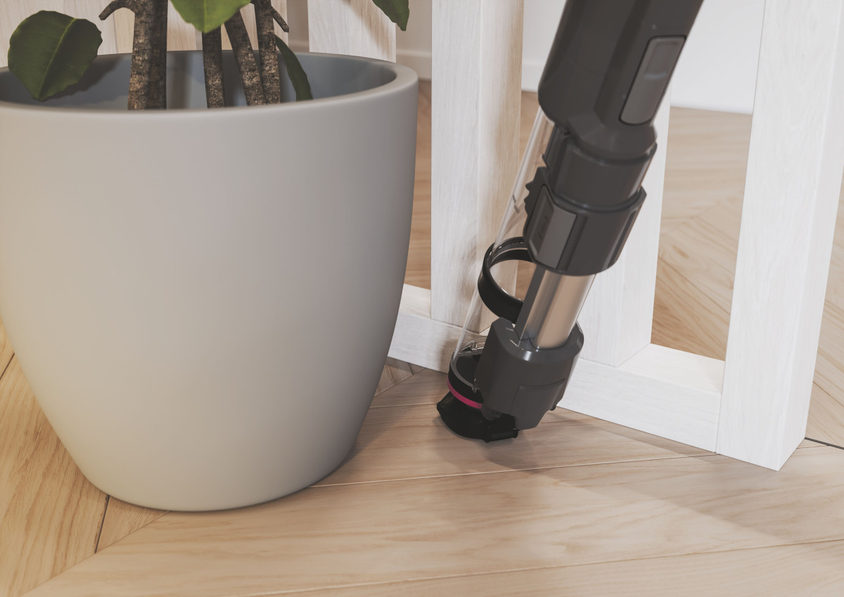 Szczególną uwagę warto zwrócić na opatentowaną przez producenta szczotkę 360° CORNER GENIE™. Odpowiednio wyprofilowana końcówka sprawia, że czyszczenie narożników nawet z najmniejszych okruszków nie będzie już problemem. Odkurzacz zaprojektowany jest w taki sposób, by wszystkie trudno dostępne miejsca do oczyszczenia były w zasięgu ręki. Specjalna rura flexi zegnie się w zależności od potrzeb, dzięki czemu, bez konieczności schylania się, odkurzenie podłogi pod łożkiem lub innymi meblami będzie znacznie wygodniejsze. Jeśli miejsce jest zbyt ciemne oświetlenie ledowe doświetli przestrzeń, dzięki temu wszystkie nieczystości będą widoczne, a samo sprzątnie będzie bardziej precyzyjne. Producent pomyślał również o właścicelach czworonogów. Do usuwania sierści zwierząt z miękkich powierzchni idealnie sprawdzi się mini elektro-szczotka. W przypadku podłóg i dywanów odpowiednia będzie szczotka Anti-Twist z mechanizmem automatycznego czyszczenia, który zapobiega blokowaniu wałka przez owijające się wokół niego włosy, sierść i włókna przekazując je bezpośrednio do pojemnika. W zestawie znajduje się również mini ssawka do skutecznego czyszczenia zanieczyszczeń z poduszek i innych powierzchni materiałowych, a także końcówka 2w1 do odkurzania różnych typów przestrzeni jak meble tapicerowane lub grzbiety książek.