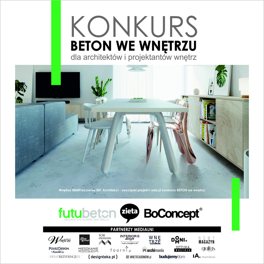 Po raz drugi marka FutuBeton – producent betonowych posadzek dekoracyjnych wraz z Partnerami markami Zięta Prozessdesign oraz BoConcept ogłosiła konkurs na najlepszy projekt. Przedsięwzięcie skierowane jest do profesjonalistów zajmujących się zawodowo projektowaniem wnętrz prywatnych i publicznych oraz studentów wydziałów architektury oraz kierunków artystycznych.