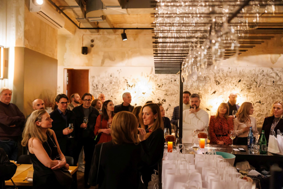 31 stycznia zaproszeni architekci i przedstawiciele czołowych marek (Omnires, Basen System, Carpets&More, Arc Interiors, Kontakt Simon, Ceramika Paradyż, Parkiet Hajnówka, Krayna, BoConcept, Orska) spotkali się we wspomnianej restauracji Kieliszki na Próżnej. W jej ofercie można znaleźć ponad 250 starannie wyselekcjonowanych win pochodzących od małych i średnich producentów, głównie z Włoch. Nieodzownym towarzyszem trunków, które zadowolą podniebienia najbardziej wymagających winomanów, jest tu kuchnia oparta na lokalnych, sezonowych produktach, pełna zaskakujących smaków i pomysłów kulinarnych. A to wszystko w równie „smakowitym” wnętrzu – pełnym elegancji, klasycznych form i ciekawie dobranych kolorów.