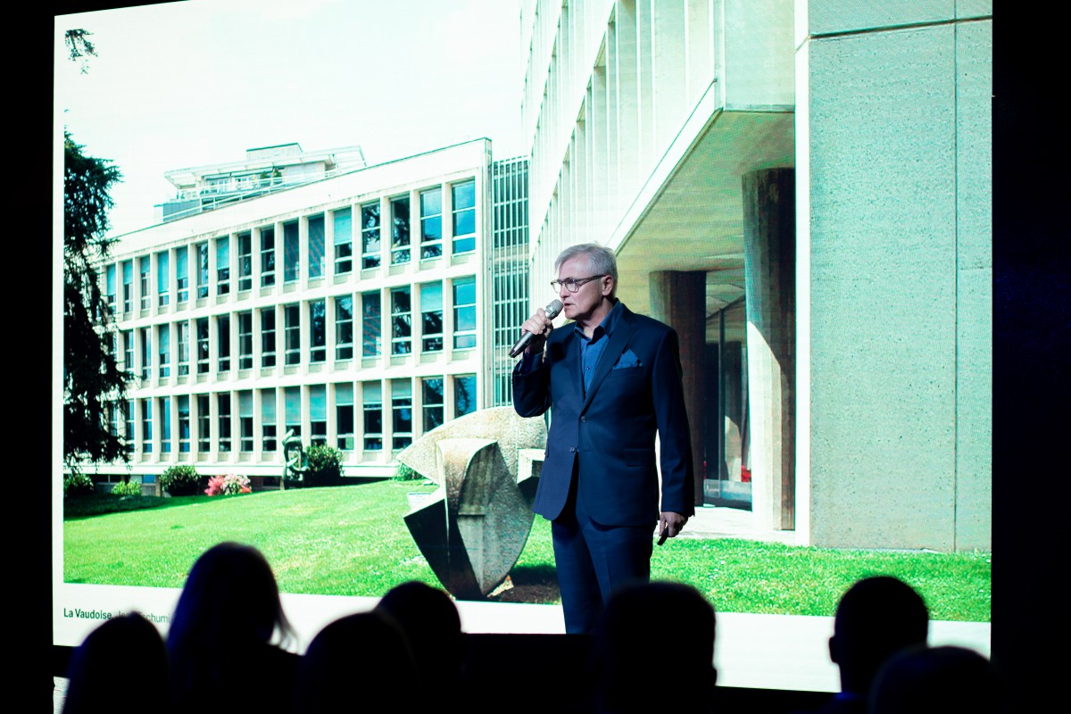 Robert Konieczny to zdobywca wielu prestiżowych nagród architektonicznych i jedyny Polak we francuskiej Academie d’Architecture, wizjoner, słynący ze śmiałych, przełomowych projektów, takich jak słynna Arka, Dom Bezpieczny czy budynek Centrum Dialogu „Przełomy”, a także szef biura architektonicznego KWK Promes. Bezkompromisowość, ciągłe poszukiwanie nowych rozwiązań i oddanie pracy, w której dążenie do perfekcji łączy się z poczuciem misji – to tylko niektóre z elementów, łączących filozofię marki Geberit z postacią jej nowego ambasadora. Podczas imprezy, towarzyszącej otwarciu nowego salonu, Robert Konieczny opowiedział o procesie twórczym oraz o architektach, którymi się inspiruje, o pracy pod wpływem czasu oraz o konieczności uwzględnienia w projekcie kontekstu każdego miejsca. Wątek architektury kontynuował dyrektor pionu Projekty i Technologia, Adrian Burzyk, który przybliżył gościom temat architektury Szwajcarii, przedstawił wybrane obiekty z lat 50. i 60., a także współczesne budynki, które wywarły wpływ na światową architekturę.