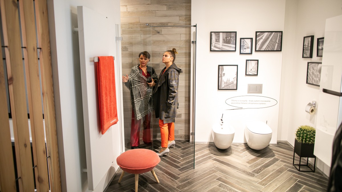 Z jednej strony – konieczność zgromadzenia wszystkich zezwoleń i atestów budowlanych na czas, z drugiej – niesprzyjająca aura, która powodowała, że tynki schły wolniej, niż zakładano… Wyzwań na drodze do realizacji projektu było wiele. Tym większe wrażenie robi efekt końcowy – efektownie zaprojektowana przestrzeń, której wnętrza utrzymane są w kolorystyce spójnej z paletą barw Geberit, Wyraźnie widać ogrom włożonej pracy i dbałość o każdy detal.