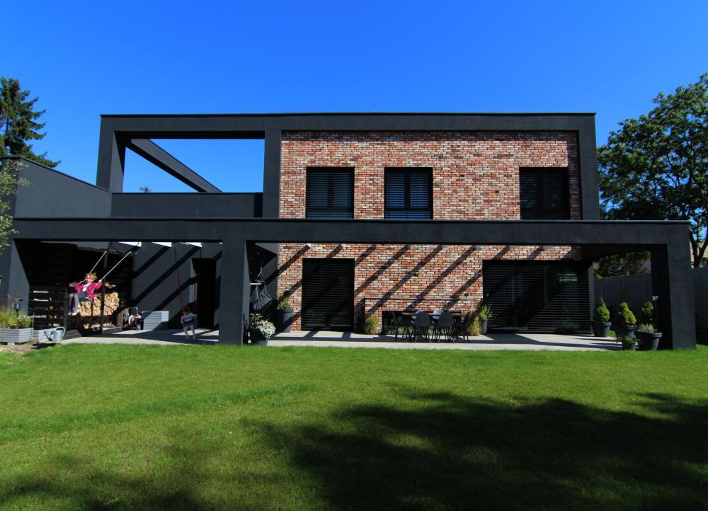 Projekt architektoniczny „Domu ramowego” powstał dla działki, znajdującej się w otoczeniu mało finezyjnej zabudowy z czasów PRL-u, domów – kostek o mało urozmaiconych bryłach. Architekci zdecydowali się nawiązać do tego, projektując bryłę prostą, kubiczną, o płaskim dachu i uporządkowanej geometrycznej bryle. Powód takiego kształtu domu jest jeszcze jeden: zwarta, jednorodna bryła zużywa mniej energii, łatwiej ją ogrzać i mniejsze są w niej straty ciepła. Dom zbudowano z cegły rozbiórkowej (cegła jest kojarzącym się ze Śląskiem materiałem, ponownie użyta mniej obciąża środowisko).