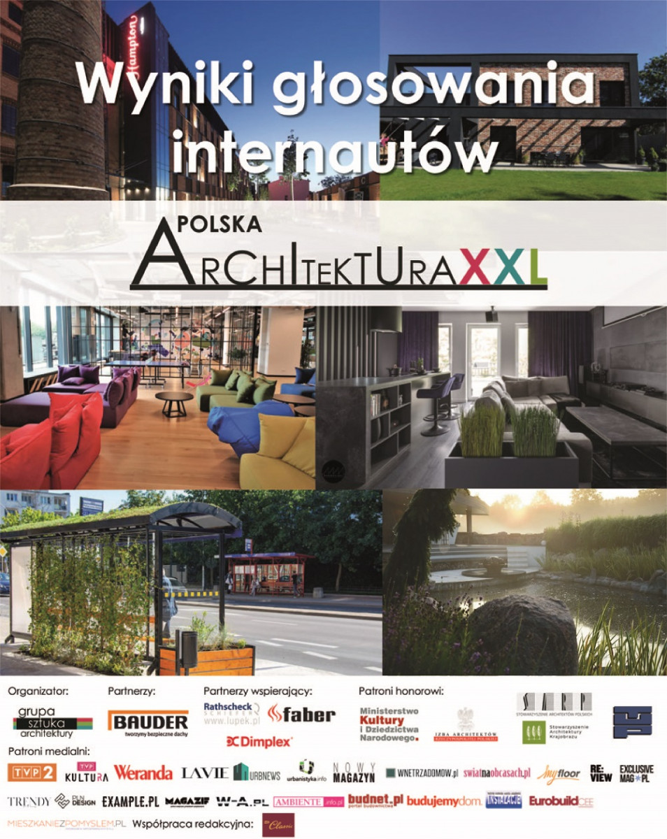 Zakończyło się głosowanie internautów dwunastej edycji plebiscytu Polska Architektura XXL. Publiczność wybrała swoich faworytów z puli ponad 130 realizacji zgłoszonych w trzech kategoriach: kubatura, wnętrza i krajobraz.