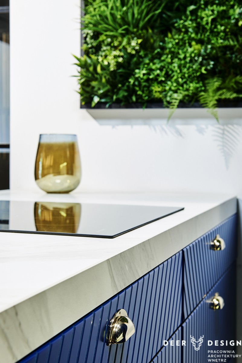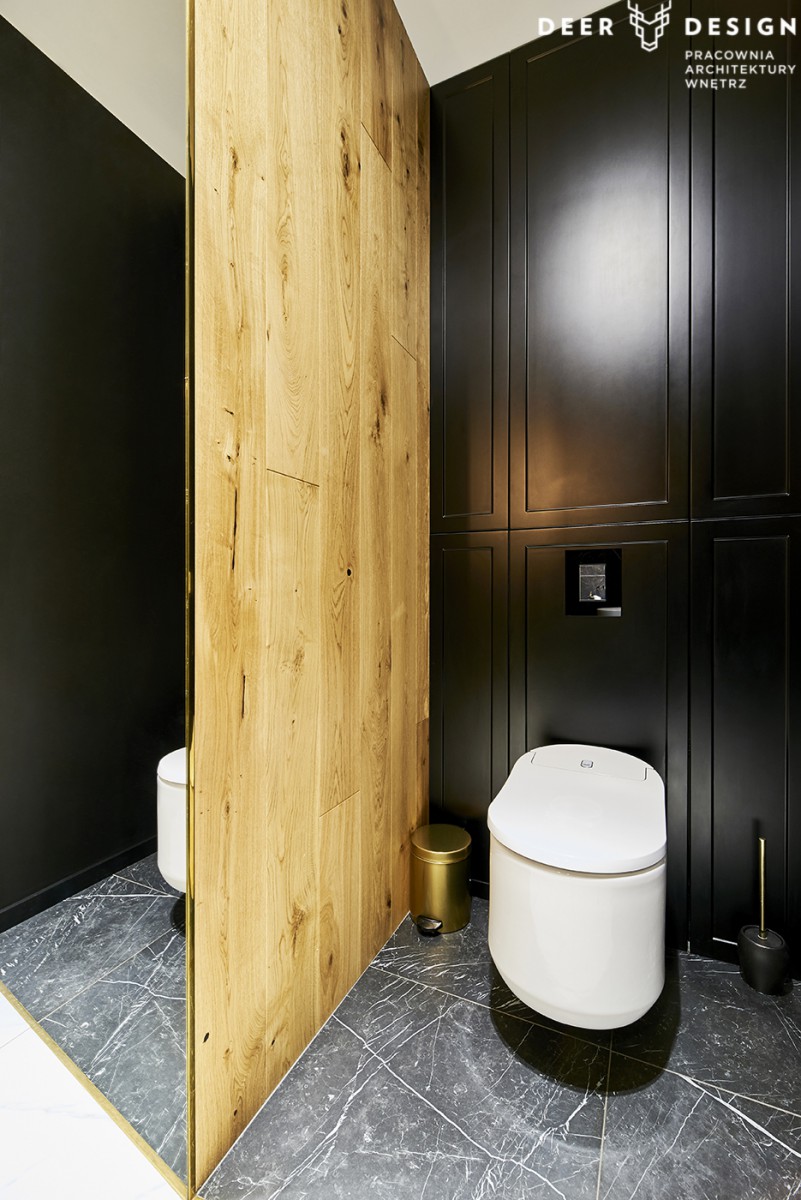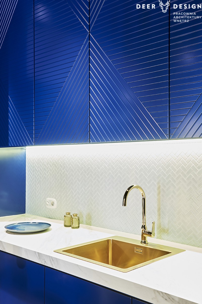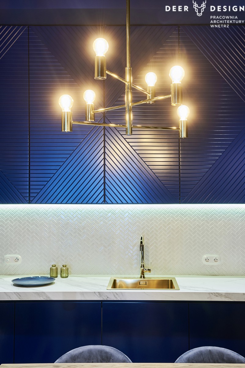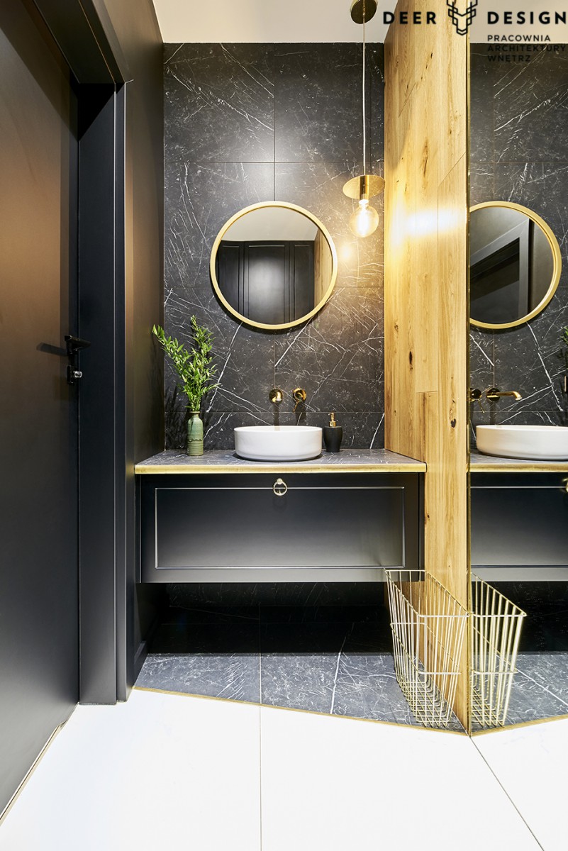 Ekspozycja to 250 m2 powierzchni wypełnionej materiałami i rozwiązaniami, które klient może zobaczyć i przetestować podczas wizyty w pracowni. Dwie, różne od siebie kuchnie, detale na ścianach, ekspozytory z drewnianymi podłogami, płytkami i ogromny wachlarz próbek farb, tapet czy kamieni. Wcześniejsi najemcy lokalu prowadzili tu fitness klub połączony z przestrzenią zabaw dla dzieci. Architektom z Deer Design zależało na wyznaczeniu stref. Od rozmowy przy stole, przejście przez przestrzenie pokazowe jak łazienka czy kuchnia, aż do miejsca gdzie swobodnie architekt może stworzyć moodboard z proponowanych dla klienta materiałów. Pierwsze wizualizacje pracowni to zachowawcze zabudowy kuchenne i stonowane kolory. Architekci jednak zdecydowali się pokazać niestandardowe rozwiązania takie jak kuchnia w niebieskim kolorze, frezowane fronty, wyspy kuchenne, czy funkcjonalne systemy szuflad. Klient może już na pierwszym spotkaniu zobaczyć to, co niesztampowe i pozbawione utartych schematów. Wszystkie te elementy wystroju tworzą swego rodzaju eklektyzm, dlatego w pracowni ściany pomalowane zostały na czarny kolor, który tworzy idealne tło do pokazania różnego rodzaju faktur i kolorów dostępnych materiałów. Jedynie w kuchni utrzymanej w ciemnej kolorystyce zastosowano ściany w jasnych kolorach dla pokazania kontrastów i spójności pomieszczeń. Każdy klient może poczuć się tu wyjątkowo i wraz z architektem odbyć przyjemny spacer po wszystkich pomieszczeniach.