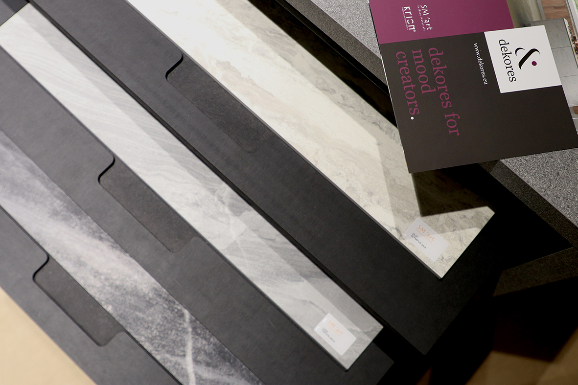 Ważnym elementem ekspozycji podczas Warsaw Home były produkty debiutującej marki Dekores. To kompletnie nowa propozycja grupy REJS obejmująca materiały dekoracyjne – płyty, blaty, fronty i kompozyty wykorzystywane do produkcji pięknych i unikalnych mebli i wnętrz. W jej ramach funkcjonują obecnie dwa brandy.