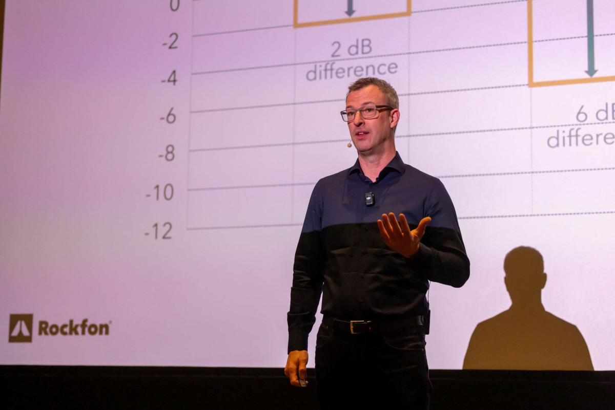 Angażująca, multimedialna prezentacja z elementami akustycznego doświadczenia, jaką oczarował uczestników Pascal van Dort, koncentrowała się wokół sposobów uzyskiwania pożądanych warunków akustycznych w biurach różnego typu i skali, co zapowiadał tytuł prezentacji: „Dążenie do komfortu akustycznego w przestrzeniach biurowych”. Błędy projektowe i metody ich usuwania zostały zaprezentowane oraz szczegółowo omówione na konkretnych przykładach, przede wszystkim z europejskich biur. Pascal van Dort z zaangażowaniem promuje znaczenie projektowania akustycznego jako kluczowego elementu aranżacji przestrzeni. Znany jest jako rzecznik powszechnego zrozumienia roli dźwięku – ze szczególnym naciskiem na zagrożenia, jakie niesie nadmierny poziom hałasu – i świadomego projektowania akustyki wnętrza jako „lekarstwa” na dojmujące zanieczyszczenie hałasem, jakiego doświadczamy we współczesnym świecie. W swoim wystąpieniu niejednokrotnie podkreślił, że w centrum projektowania akustycznego powinien zawsze pozostawać człowiek i jego potrzeby. Dźwięki, którymi karmimy – lub też katujemy – uszy każdego dnia, w dłuższej perspektywie wpływają na nasz stan psychofizyczny w stopniu znaczącym. Właśnie dlatego projektowanie akustyczne zasługuje na to, by przyznać mu status jednego z najistotniejszych, obok funkcji i formy, elementów kształtowania każdego typu wnętrz.