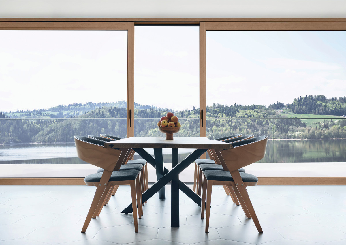Zdjęcie 1. Wykorzystanie drewna w produkcji okien Innoview zapewnia wysoką termoizolacyjność oraz odpowiednią sztywność konstrukcji nawet przy dużych rozmiarach przeszkleń.