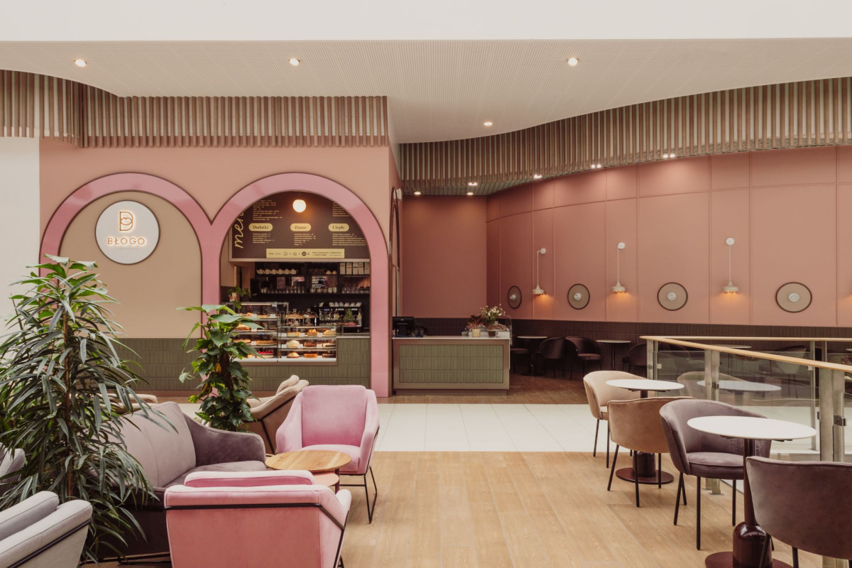 Wśród gwaru i chaosu największej galerii handlowej w Gdyni, kryje się azyl dla zmęczonych zakupami i hałasem klientów. Cukiernia BŁOGO to nowy koncept pozwalający nie tylko na odpoczynek. To miejsce w którym podniebienie cieszą wyjątkowe smaki, a oczy napawają się pięknym otoczeniem. Za projekt tej wysmakowanej przestrzeni inspirowanej cukierniczymi składnikami odpowiada pracownia projektowa Biuro Kreacja z Dorotą Terlecką na czele.
