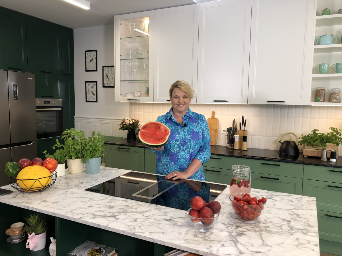 – Studio programu opowiadającego o ekologii samo powinno być wykończone i wyposażone w elementy przyjazne naturze. Dlatego na ściany i podłogi wybrałam ceramikę – produkt wpisujący się w konwencję eko i powstający w zgodzie z naturą. Niezwykle interesujące są płytki, które znalazły się na ścianach w kuchni – trudno uwierzyć, że nie jest to drewno a ceramika! Efekt jaki udało nam się uzyskać doskonale pasuje do mojej osobowości. – mówi Katarzyna Bosacka.
