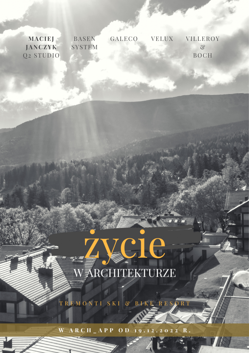 Już w grudniu Maciej Janczyk – założyciel Q2 studio – zabierze Was na architektoniczny spacer po hotelu Tremonti. To Maciej Janczyk i jego zespół odpowiedzialny jest za projekt resortu, położonego w tak wyjątkowym miejscu na mapie Polski, jakim jest Karpacz.
