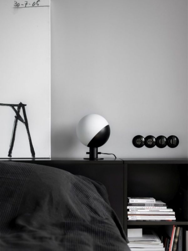 Baluna podobnie jak pozostałe kolekcje jest lampą studyjną, nie przemysłową. Różnice widoczne są w sposobie wykonania, łączeniach, niuansach. Corem modelu jest regularny kulisty klosz wykonany z mlecznego, matowego szkła. Niczym mycka okala go metalowy – malowany proszkowo na czarny mat łącznik zakończony tubą. Krzyżowo przecina ją włącznik i wyprowadzanie kabla. Wyważone proporcje formy ożywia skos. A geometryczne napięcia dają lampom niezwykłą wartość estetyczną.