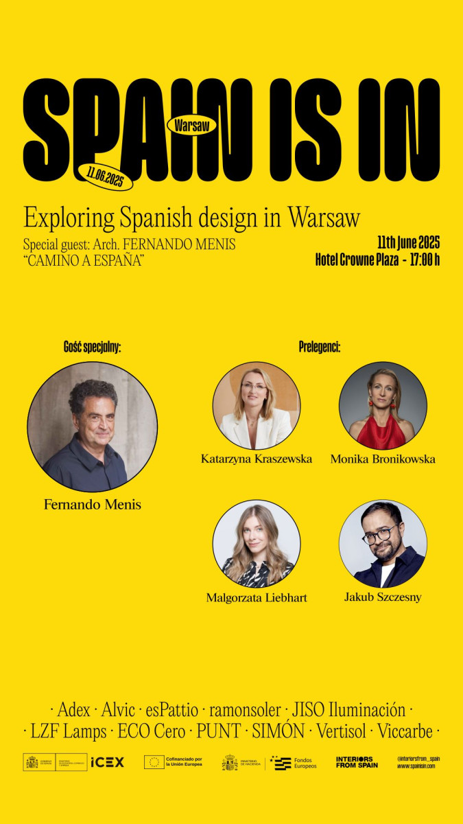 Podczas panelu dyskusyjnego zatytułowanego „Projektowanie w Hiszpanii oczami polskich architektów – konteksty, regulacje, wyzwania” swoimi doświadczeniami podzielą się: architektki wnętrz: Katarzyna Kraszewska, Monika Bronikowska (Hola Design), Małgorzata Liebhart (WZ Studio). Ekspertki opowiedzą o praktycznych aspektach projektowania za granicą, różnicach kulturowych i realiach współpracy z hiszpańskimi partnerami. Całość poprowadzą Olga Kisiel-Konopka i Kuba Szczęsny.W przestrzeni showroomu zaprezentowane zostaną najciekawsze marki z Hiszpanii, które inspirują architektów i projektantów na całym świecie. Wśród wystawców znajdą się: Adex, Espattio, Ramon Soler, Jiso Iluminación, LZF Lamps, Ecocero, Punt Mobles, Vertisol, Viccarbe, Alvic oraz Kontakt Simon.
