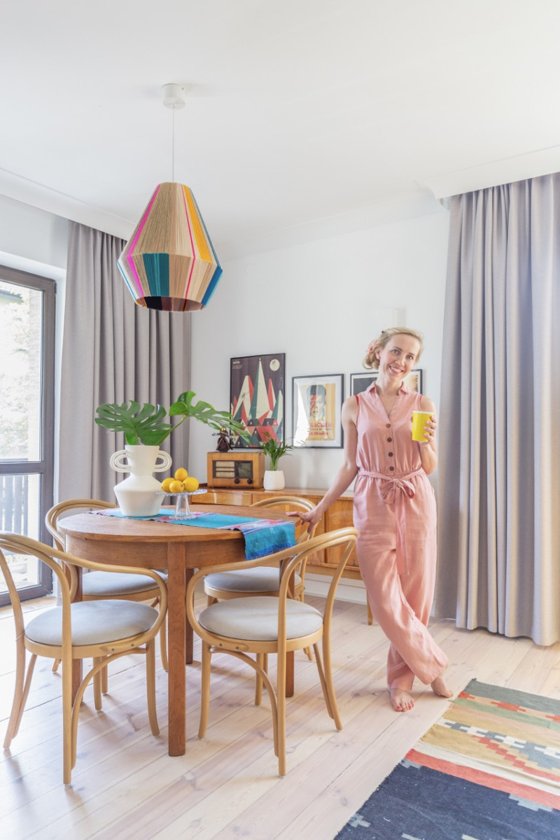 Dom Ewy i Maćka jest żywy, cieszy oko i ujmuje swoją różnorodnością̨. Pełno tu rodzinnych pamiątek, perełek designu i klasyków z okresu PRL-u. Towarzyszą im żywe barwy, zaczerpnięte z folkloru, który jest nieodłącznym elementem życia rodziny. Za aranżacyjny ład i harmonię odpowiada architekt Weronika Budzichowska z pracowni To Be Design.