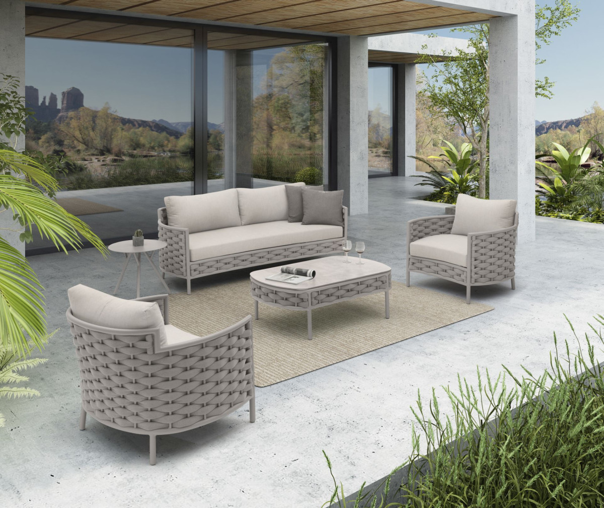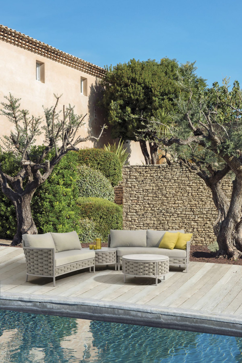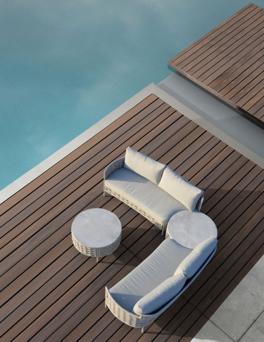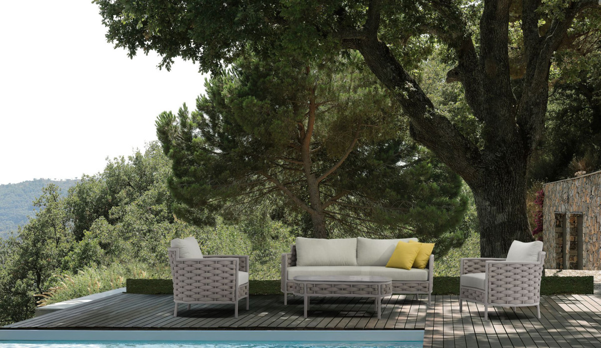 Z jakimi jeszcze (równie trwałymi!) alternatywami dla drewnianych mebli ogrodowych przychodzą projektanci? Niektóre materiały mogą wydawać się naprawdę zaskakujące! Na przykład meble z kolekcji Balear od Couture Jardin (salon Miloo Home) w stylu boho zostały uzupełnione splotami z lekkiego, choć wytrzymałego sznurka. Na jeszcze inne rozwiązanie zdecydowali się projektanci kolekcji LOOP (dostępna w salonie Garden Space). Zaproponowali oni użycie plecionki z elastycznej liny z gumą w środku, która poza walorami funkcjonalnymi jest też estetycznym wyróżnikiem mebli wypoczynkowych z tej kolekcji.