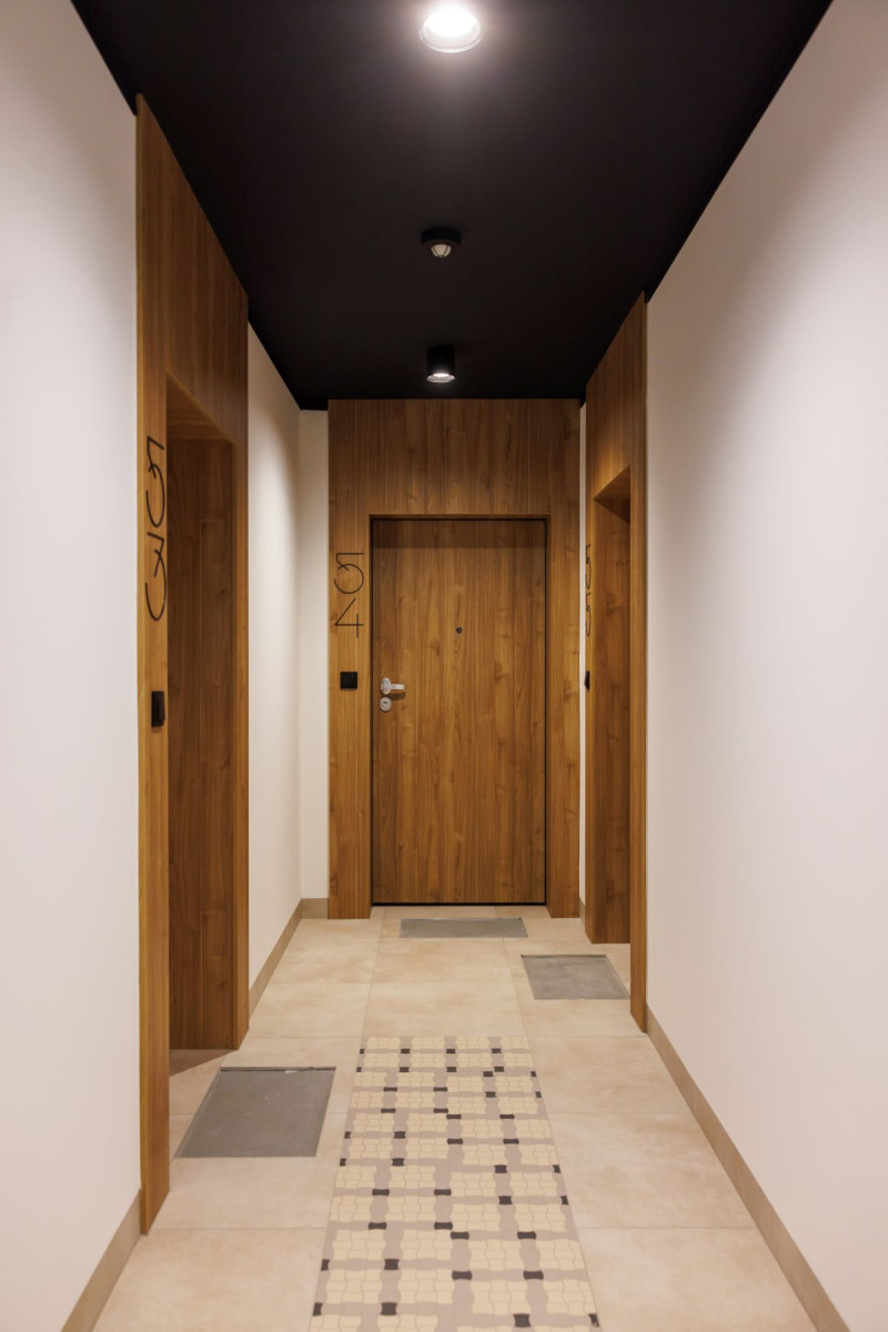 Motyw cegły, który pojawia się na elewacji, wprowadziliśmy również do wnętrz części wspólnych budynku. Dzięki temu udało nam się stworzyć spójną i harmonijną przestrzeń, która łączy tradycję z nowoczesnością” – opowiada architekt Magdalena Federowicz-Boule, założycielka, Prezeska i Dyrektor kreatywna w pracowni Tremend.