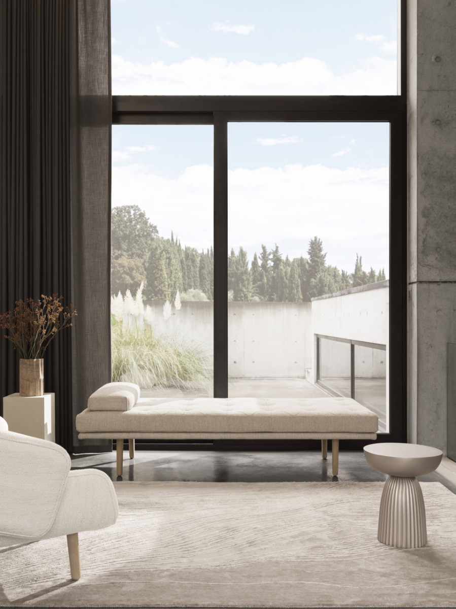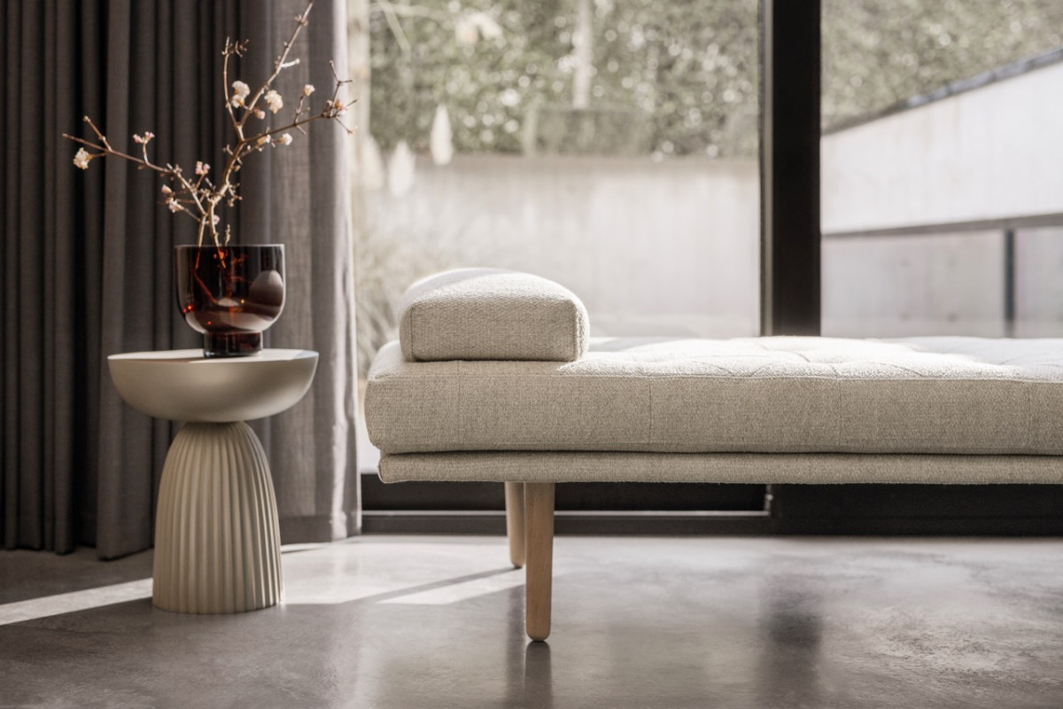 W przestrzeniach, które łączą pracę, zabawę i relaks, rozważ leżankę. Dzięki swojej wielofunkcyjności taki mebel można umieścić niemal wszędzie – w tym w miejscach, w których nie zmieściłoby się pełnowymiarowe łóżko lub sofa. „Leżanki to niezwykle przytulne rozwiązanie dla mniejszych przestrzeni” – mówi Nathalie. „Możesz umieścić je w dowolnym miejscu – przy oknie lub półce z książkami”.