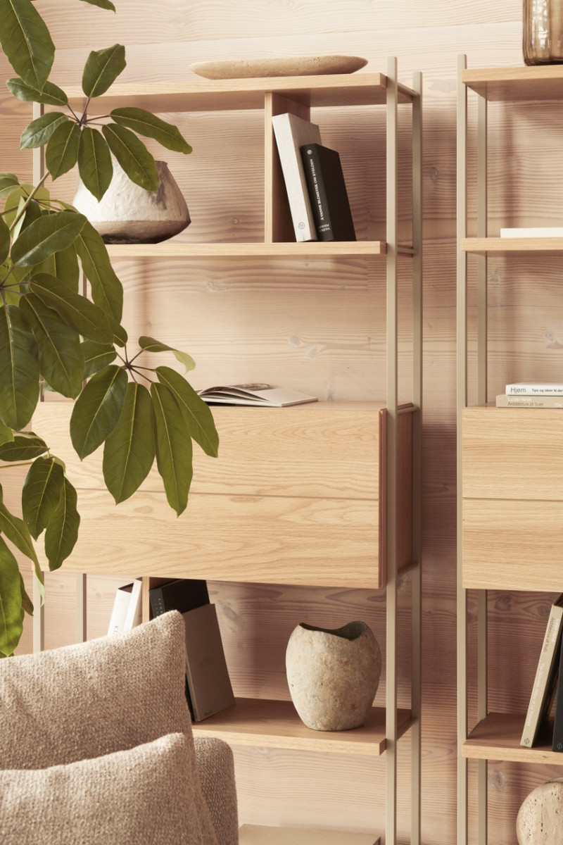 Modułowe regały, takie jak Calgary, pomagają uporządkować pomieszczenie, oferując wszechstronność zastosowań i możliwość dostosowania do własnych potrzeb. Zapewniają opcję otwartych półek, opuszczanych schowków i szuflad.