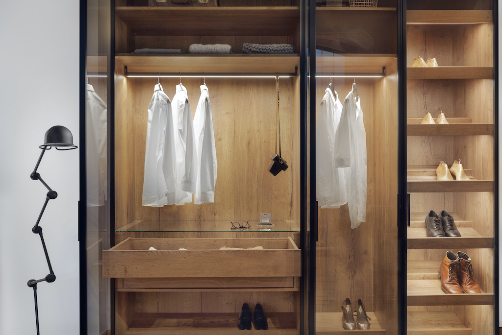 Przed złożeniem zamówienia dobrze zapoznać się z dostępnymi usprawnieniami i akcesoriami, które bardzo ułatwiają codzienne użytkowanie. Należą do nich: pantografy, za pomocą których przyciągniemy do siebie umiejscowione wysoko drążki z ubraniami, organizery do szuflad na biżuterię i drobne akcesoria, ustawione pod kątem półki na buty, wygodne wysuwane półki na swetry i wieszaki na spodnie. I jeszcze jeden ważny element – oświetlenie, które może pojawić się w drążkach, szklanych półkach czy też we frezach ścianek i półek wykonanych z płyt. Te wszystkie udogodnienia oferuje Raumplus.