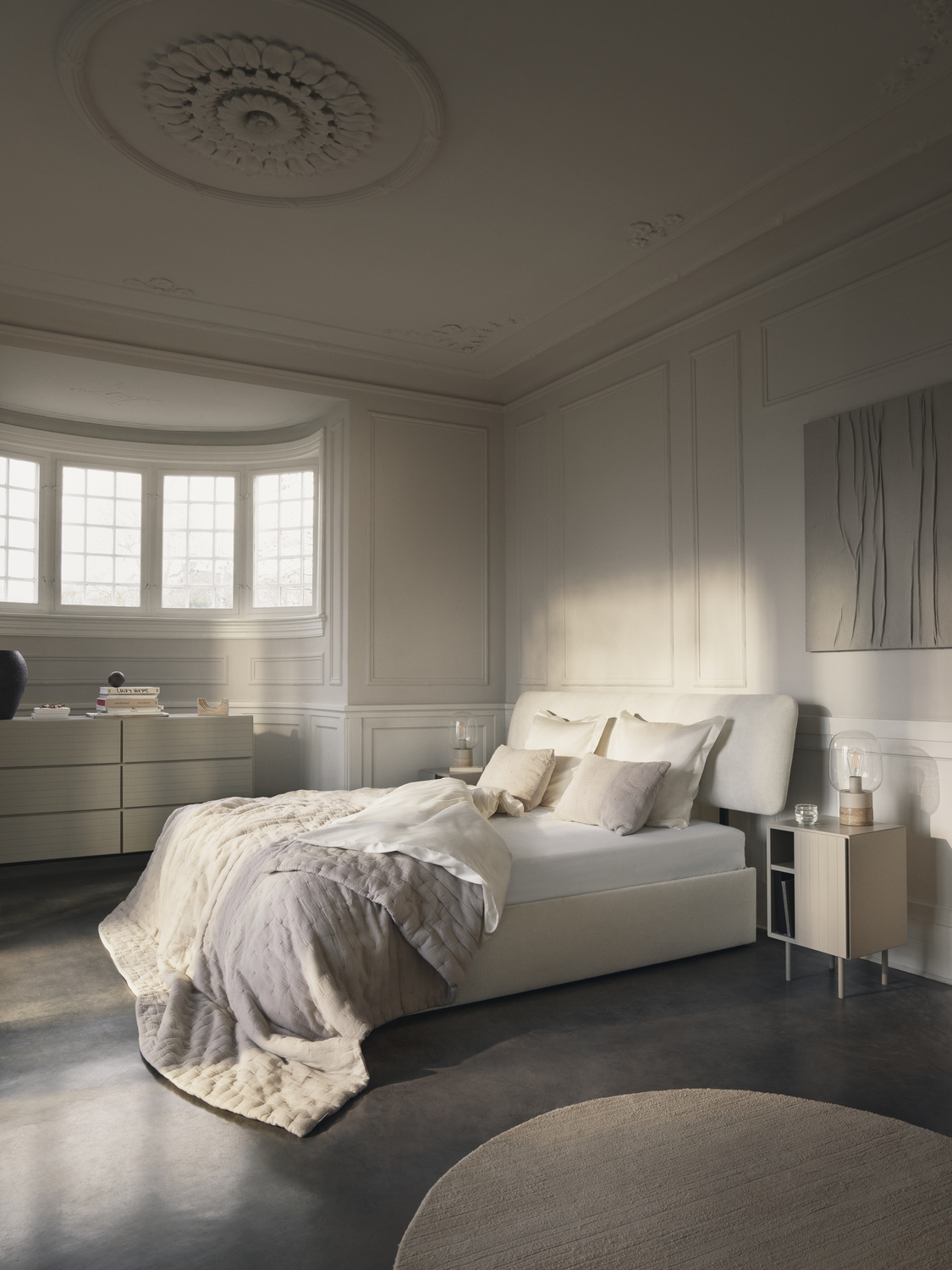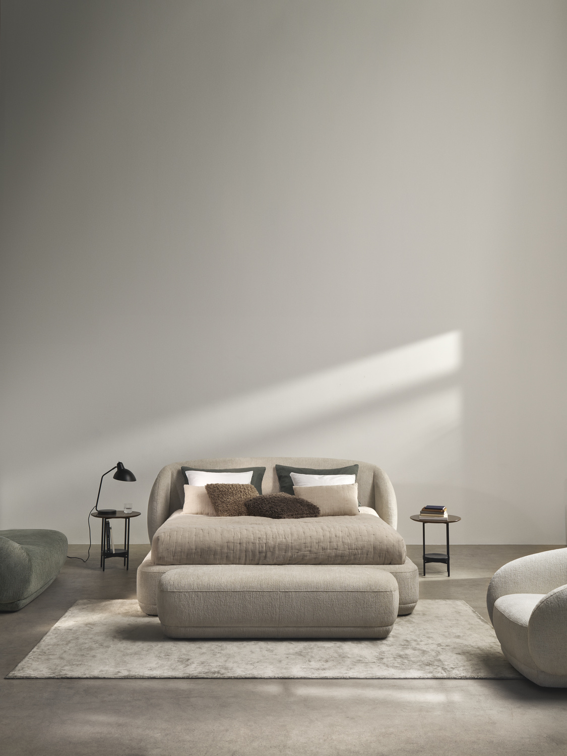 Podczas gdy w kolekcji Element chodzi o zdolność adaptacji i dostosowania, seria Bolzano to kwintesencja zmysłowego spokoju. Pluszowa, zaokrąglona i zapraszająca kolekcja Bolzano uosabia trend „Cosy Cocoon” coraz powszechniejszy we wnętrzach. Dzięki 360-stopniowemu wyglądowi, miękkiej tapicerce i uspokajającym, rzeźbiarskim kształtom, Bolzano przekształca każdą sypialnię w przytulne gniazdko.