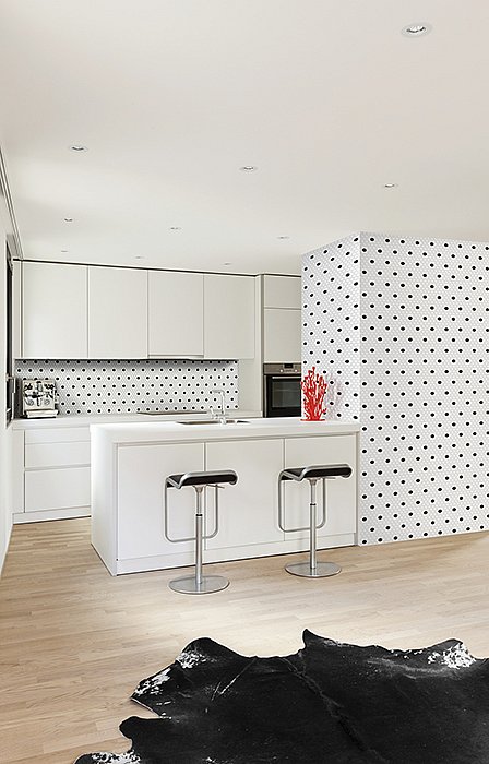 Czarno-białe wzory sprawdzą się zarówno w klasycznych wnętrzach kuchni i salonów, nadając im nieco swobody, jak i w mniej formalnych przestrzeniach łazienek, a nawet w… modnych kawiarniach.