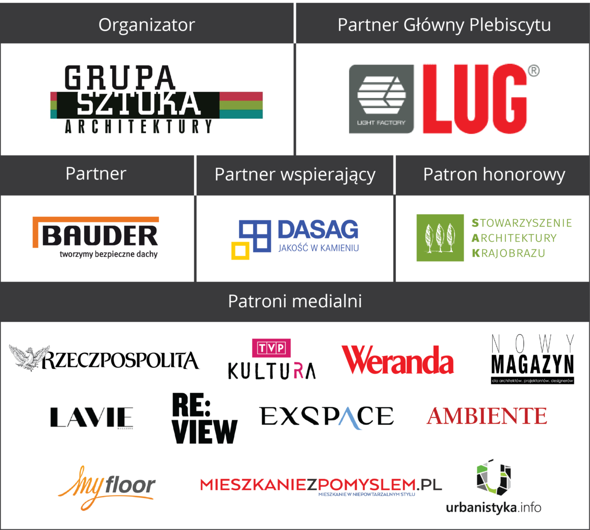 Zapraszamy do głosowania w Plebiscycie Polska Architektura XXL organizowanym przez Grupę Sztuka Architektury, którego celem jest podsumowanie mijającego roku w polskiej architekturze, które obejmuje trzy kategorie: kubaturę, wnętrza i krajobraz. Głosowanie internautów potrwa do 28 lutego 2019 r.