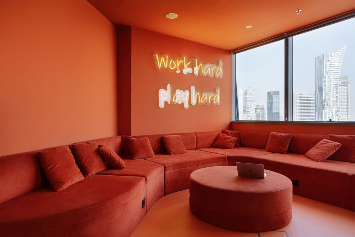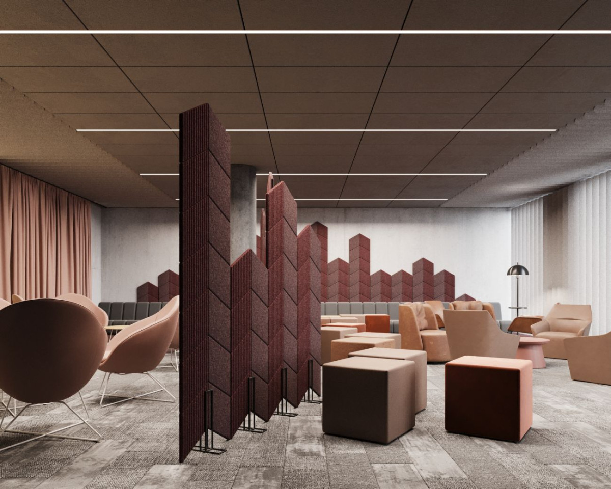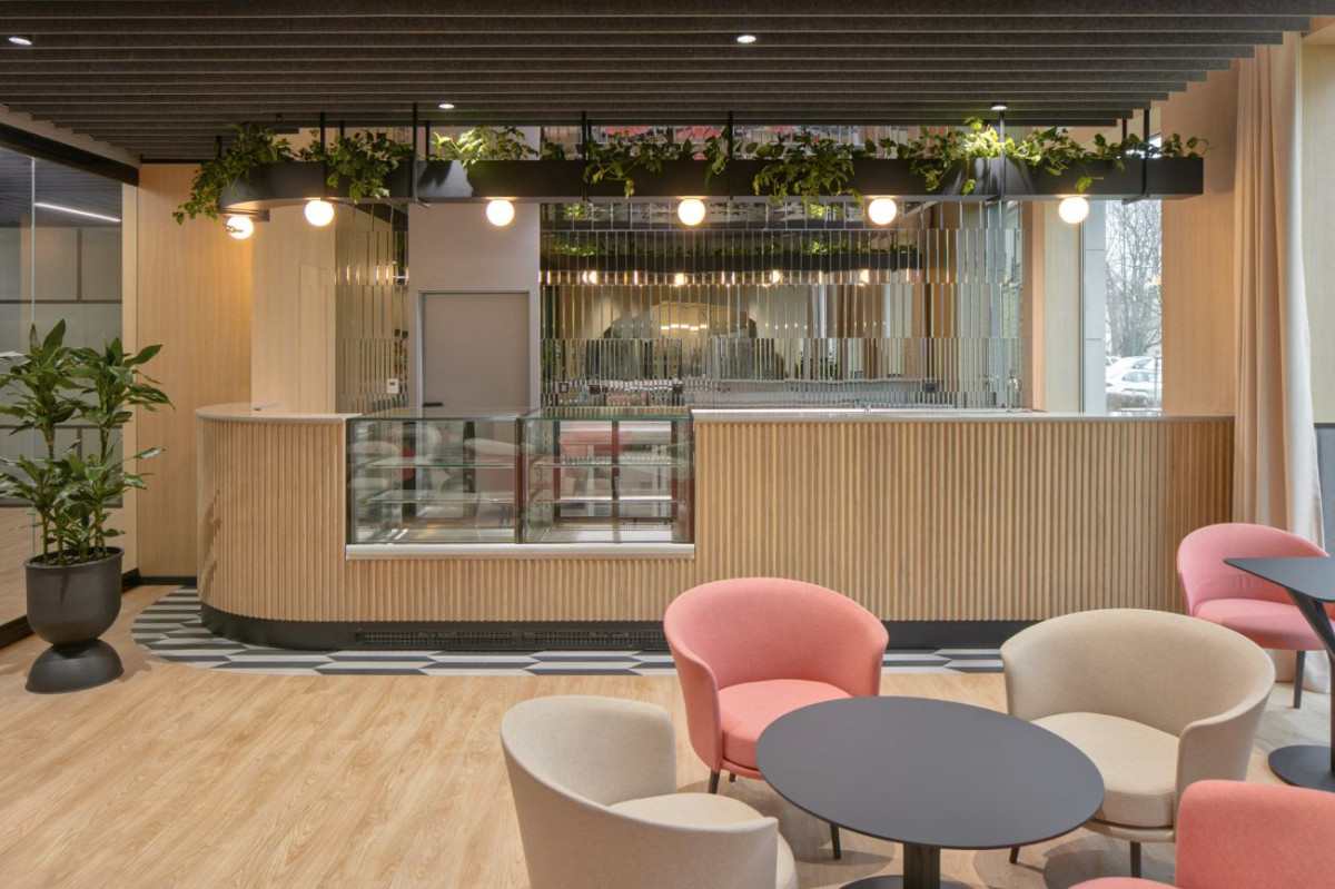 Stonowane, naturalne barwy dają poczucie spokoju i tworzą środowisko sprzyjające wyciszeniu i skupieniu. Wprowadzenie naturalnej roślinności poprawia jakość powietrza i działa kojąco na użytkowników. Ważnym elementem tej filozofii jest również oświetlenie typu HCL (Human Centric Lighting).