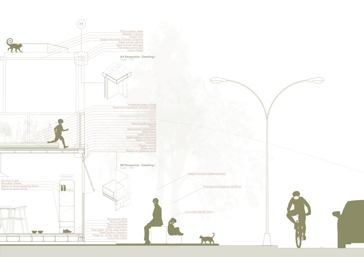 W Brazylii znajduje się wyspa Frades. Rozłożyste równiny poprzecinane są terenami leśnymi. Luan Fontes zaprojektował nową siedzibę dla szkoły tańca, która dotychczas działała w pomieszczeniach pobliskiego kościoła. Budynek odpowiada na potrzeby lokalnej społeczności. Znalazło się tu także miejsce dla trzech mieszkań socjalnych, które mają w awaryjnych sytuacjach służyć jako schronienie dla mieszkańców wyspy. Biorąc pod uwagę lokalne warunki, zarówno panujący klimat, jak i dostępne zasoby finansowe, projektant zdecydował się wykorzystać do budowy 42 kontenery. Udało się uzyskać przestrzeń 620 metrów kwadratowych. Elewacja budynku jest spójna z otoczeniem.