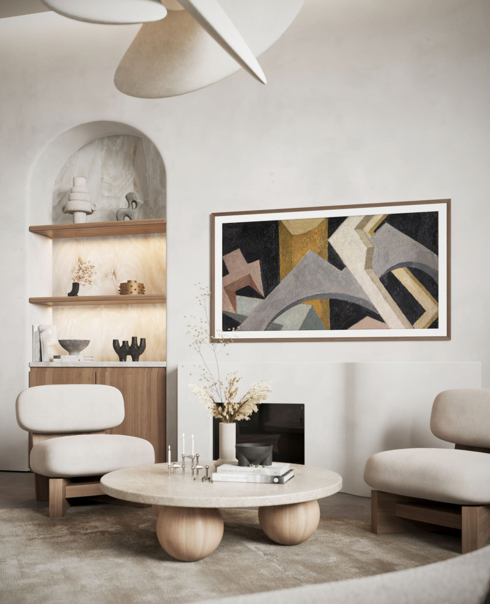 Jak uzasadniała werdykt jury arch. Ida Mikołajska z MIKOŁAJSKAstudio przy wyróżnieniu Weroniki Forteckiej – Przedstawiona praca jest ciekawą propozycją odpowiedzi na główne hasło konkursu: ZRÓB TO PO SWOJEMU. Nie jest rzeczą specjalnie trudną wkomponować telewizor w przestrzeń, która bazuje na prostych formach – w tzw. “nowoczesnej” stylistyce. Wyzwaniem jest to natomiast we wnętrzach bardziej wyrafinowanych. Autorka wyróżnionej pracy pokusiła się o wprowadzenie (z dużym sukcesem) telewizora Samsung The Frame do wnętrza, gdzie dominują obłości, wyraziste faktury, naturalne materiały. Przedstawiony salon jest równocześnie elegancki jak i niewymuszony. Takie przestrzenie zazwyczaj w swojej estetyce nie tolerują jakiejkolwiek widocznej elektroniki. Tu udało się to z powodzeniem.