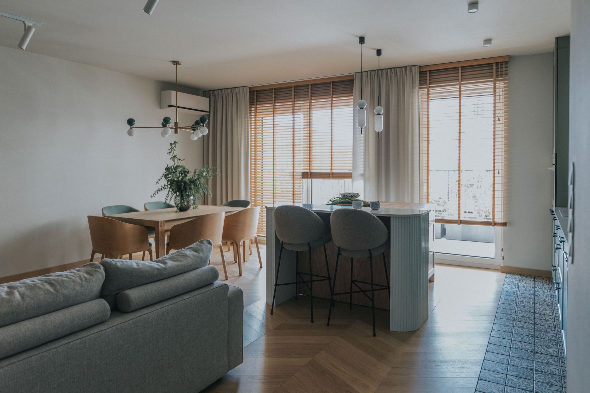 Za udaną realizacją stoi przede wszystkim zaufanie właścicieli do architektów oraz koordynacja na każdym etapie wykończenia. Dla Agnieszki i Łukasza Tymów, założycieli TYMA PROJEKT, to kolejny projekt na Jeżycach, ale pierwszy w budynku powstałym w miejscu dawnej „Modeny” czyli jednego z głównych zakładów odzieżowych lat 70-tych. Stylistyka modernistycznych zaokrągleń samej bryły czy ryflowania na elewacji znalazły więc swoje echo w projekcie. Właściciele potwierdzają, że znaleźli tu swój śródmiejski azyl.
