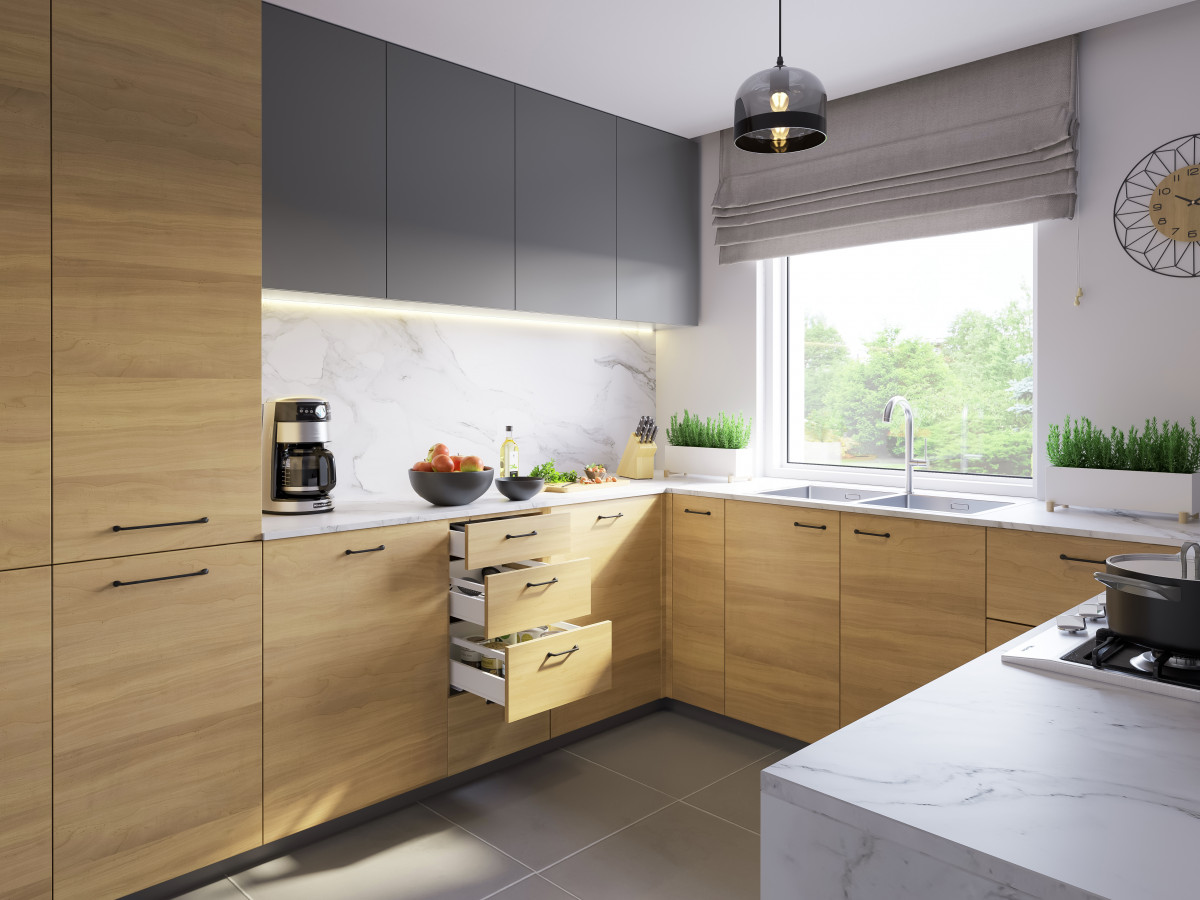 Uniwersalny system szuflad Modern Box Pro to ergonomiczne i nowoczesne rozwiązanie dla każdego rodzaju kuchni. Świetnie sprawdzi się zarówno w małych pomieszczeniach, gdzie liczy się każdy wolny metr, jak w i dużych przestrzeniach, które dają większe możliwości aranżacji.