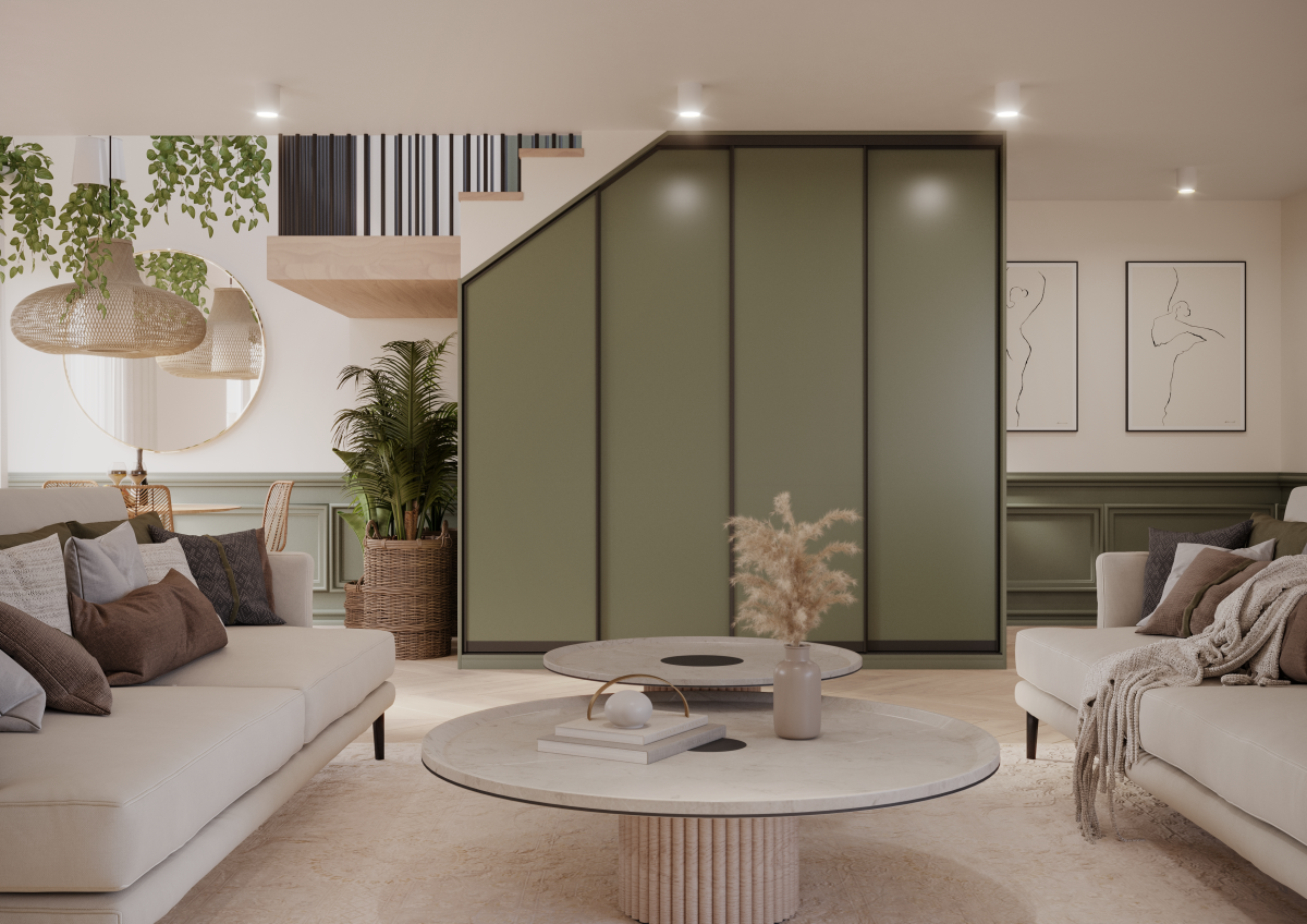 • Dopasowanie do wnętrza – bez względu na kształt pomieszczenia, szafa wnękowa może zostać zaprojektowana dokładnie do wymiarów ściany.