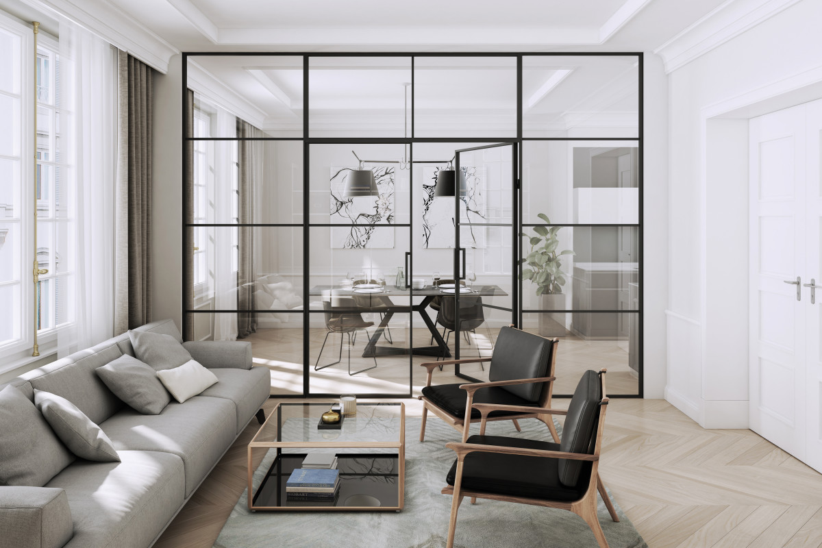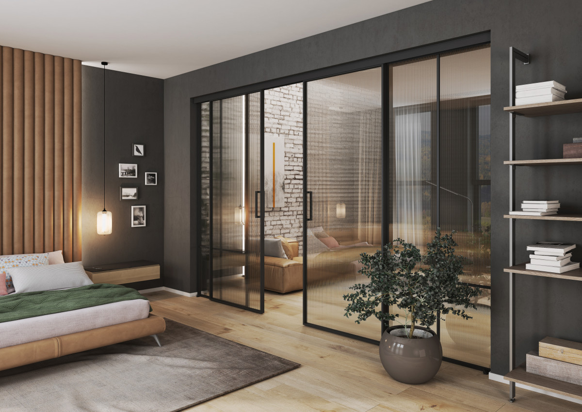Nowoczesne wnętrza stawiają na otwarte przestrzenie, ale nie zawsze całkowity brak podziałów jest wygodny. Szklane ściany i drzwi Lumi pozwalają na tworzenie wyraźnych, ale subtelnych granic między różnymi strefami mieszkania – bez utraty jego przestronności. Możesz oddzielić salon od kuchni, stworzyć intymną sypialnię w otwartym apartamencie lub wydzielić garderobę przy sypialni, nadając wnętrzu bardziej uporządkowany charakter.