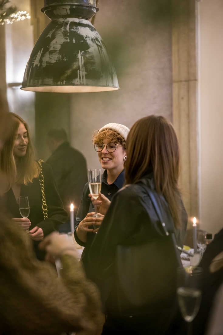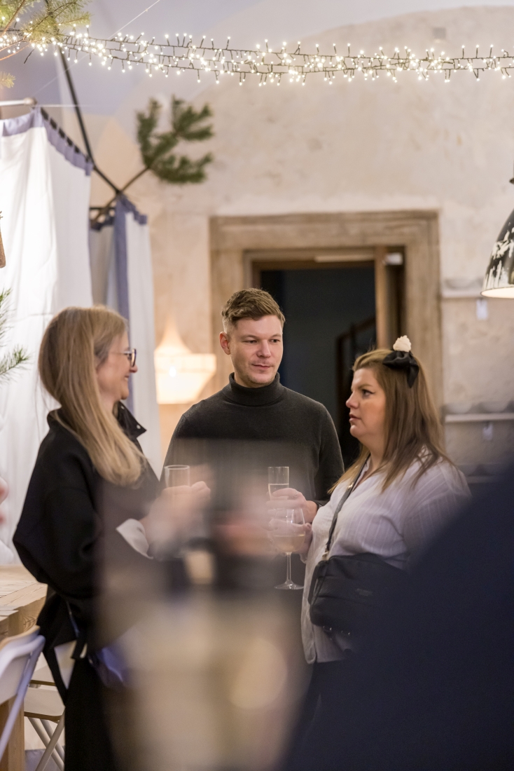 W uroczystej kolacji, która odbyła się 3 grudnia, wzięli udział laureaci, członkowie jury konkursu oraz przedstawiciele marki Samsung. Spotkanie stało się nie tylko podsumowaniem kreatywnego przedsięwzięcia, ale również doskonałą okazją do integracji środowiska pasjonatów designu. W nastrojowej scenerii restauracji Qchnia Artystyczna, przy blasku świec i wyśmienitym menu, toczyły się ożywione rozmowy pełne inspiracji i wymiany doświadczeń. Dyskusje koncentrowały się zarówno na tematach związanych z codziennością i kulinariami, jak i na głębszych refleksjach dotyczących wyzwań i trendów w projektowaniu wnętrz. Szczególną uwagę poświęcono zwycięskim projektom – ich wyjątkowości, innowacyjności oraz historii stojących za ich powstaniem. Kameralna atmosfera spotkania sprzyjała nieformalnym rozmowom i zacieśnianiu relacji między laureatami a członkami jury.
