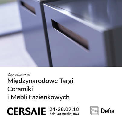 We wrześniu marka DEFRA zaprezentuje swoje najnowsze kolekcje mebli łazienkowych podczas Międzynarodowych Targów Ceramiki i Wyposażenia Łazienek CERSAIE we włoskiej Bolonii. Tegoroczna edycja targów CERSAIE 2018 rozpoczyna się 24 września i potrwa do 28 września.