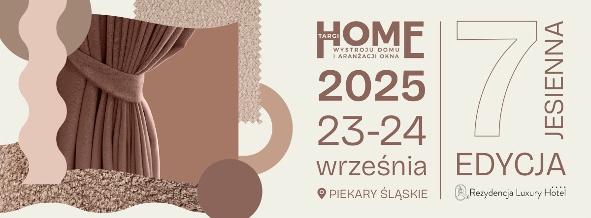 7. jesienna edycja Targów HOME odbędzie się w dniach 23 i 24 września 2025 roku w godzinach 9:00-17:00 w Rezydencja Luxury Hotel**** w Piekarach Śląskich.