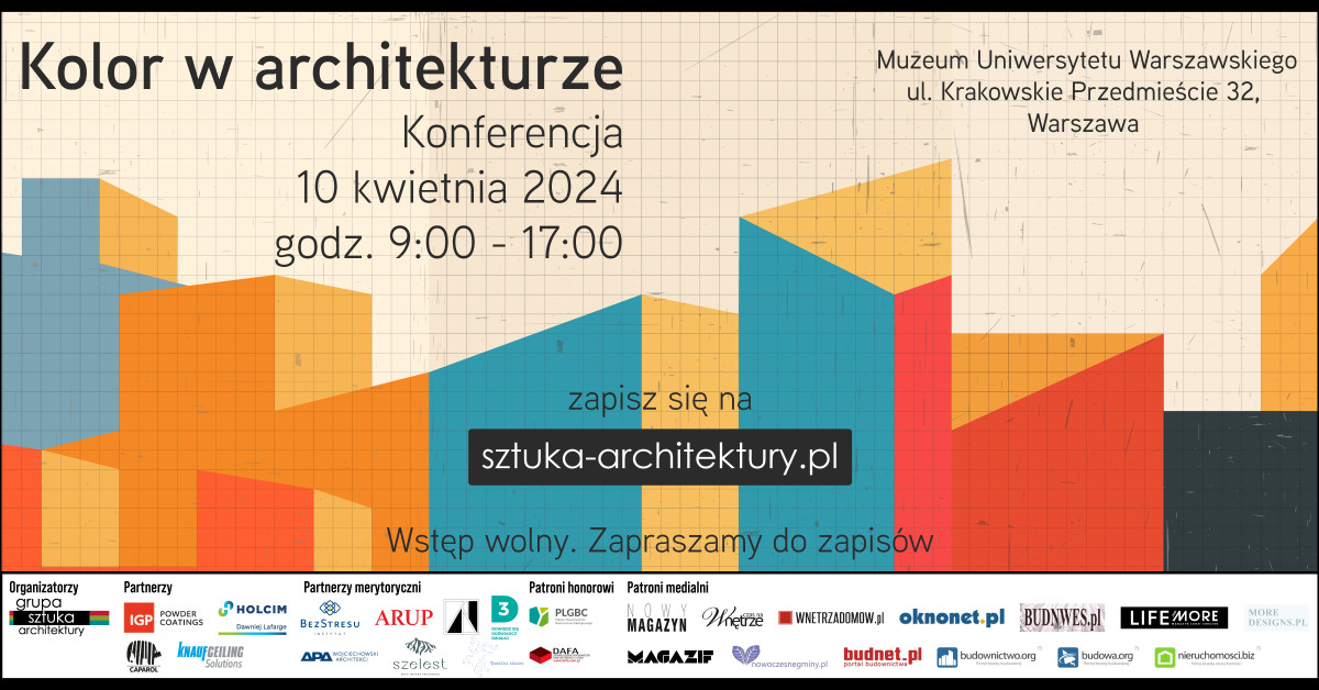 Intensywny rozwój miast wywiera coraz silniejszy wpływ na środowisko niezurbanizowane. Jednocześnie miasta i ich mieszkańcy stają przed rosnącą skalą wyzwań, takich jak zanieczyszczenie powietrza, występowanie miejskiej wyspy ciepła, nadmiar lub niedobór wody czy utrata naturalnych siedlisk. Wprowadzając elementy błękitno-zielonej infrastruktury w postaci zielonych dachów i fasad, pojemników retencyjnych, ogrodów deszczowych, nawierzchni przepuszczalnych, powierzchni strukturalnych, systemów OZE, czy systemów zrównoważonej gospodarki wodą deszczową, miasta mogą przyczyniać się do ograniczenia skutków zmian klimatu oraz redukcji emisji gazów cieplarnianych. W trakcie naszej konferencji porozmawiamy o tym, jak te wymogi połączyć z nowoczesną architekturą i jakie wyzwania stawiają one przed projektantami. Zapraszamy 13 czerwca 2024 na godz. 9:00 do Muzeum Wojska Polskiego w Warszawie. Wstęp wolny. Aby wziąć udział w spotkaniu wystarczy zarejestrować się. Ilość miejsc ograniczona.