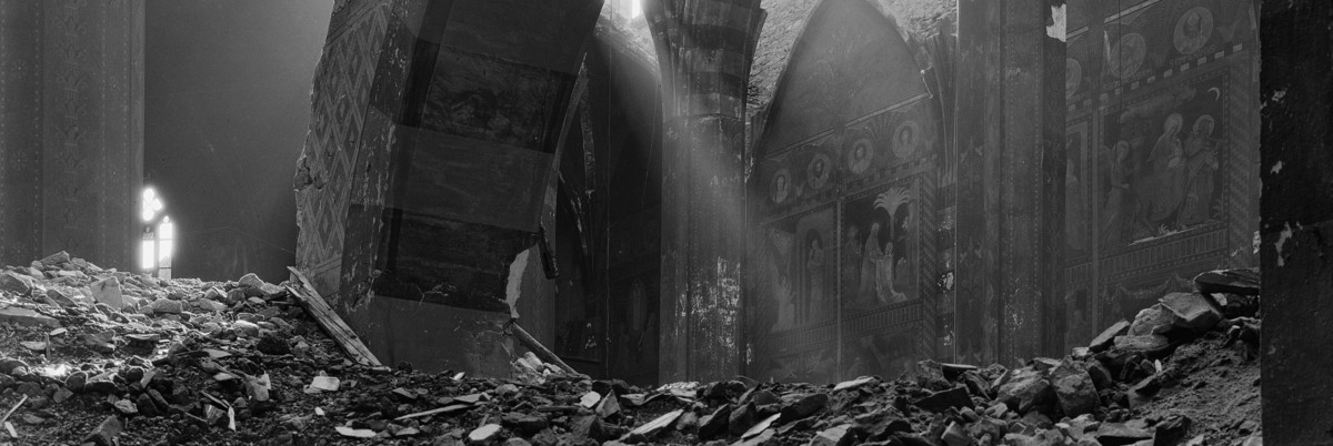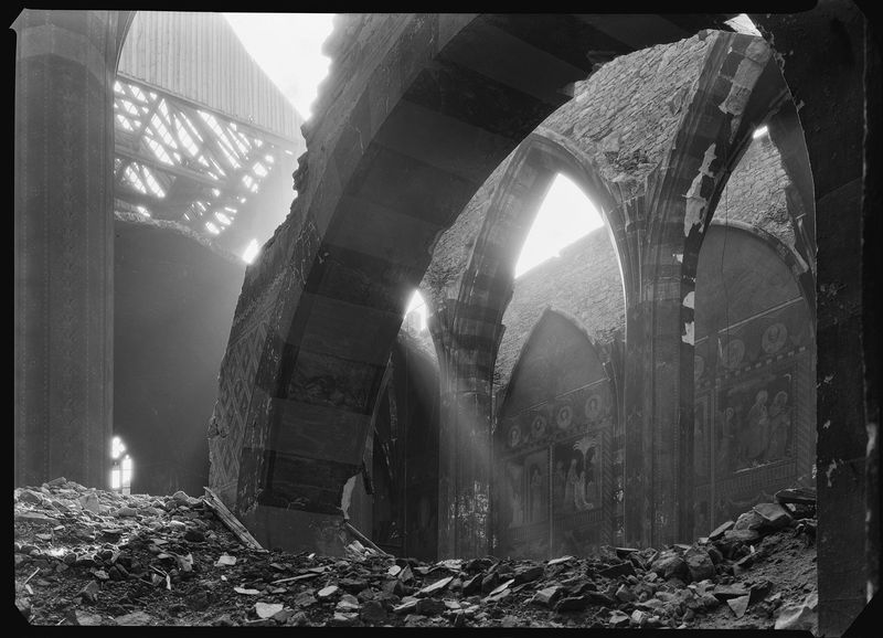 Fotografie Josefa Sudka nawiązują przede wszystkim do dwóch wydarzeń z 1945 roku. Pierwszym był omyłkowy nalot amerykańskiego lotnictwa na Pragę, który miał miejsce 14 lutego 1945 roku i spowodował zniszczenia głównie w południowych dzielnicach centrum miasta. W tej okolicy Josef Sudek skoncentrował się przede wszystkim na mocno uszkodzonych zabudowaniach klasztoru Emaus, w którego wnętrzach odnalazł wśród gruzów nieoczywistą poetykę nieładu, ze światłem wpadającym przez zawalone sklepienia. Drugie wydarzenie – powstanie praskie – rozegrało się od 5 do 9 maja 1945 roku. Przyniosło ono wyzwolenie i pokój, ale za cenę poważnego uszkodzenia ratusza Starego Miasta. Dokumentując zniszczenia gmachu Josef Sudek ukazał także powracające w okolice Rynku Staromiejskiego życie.