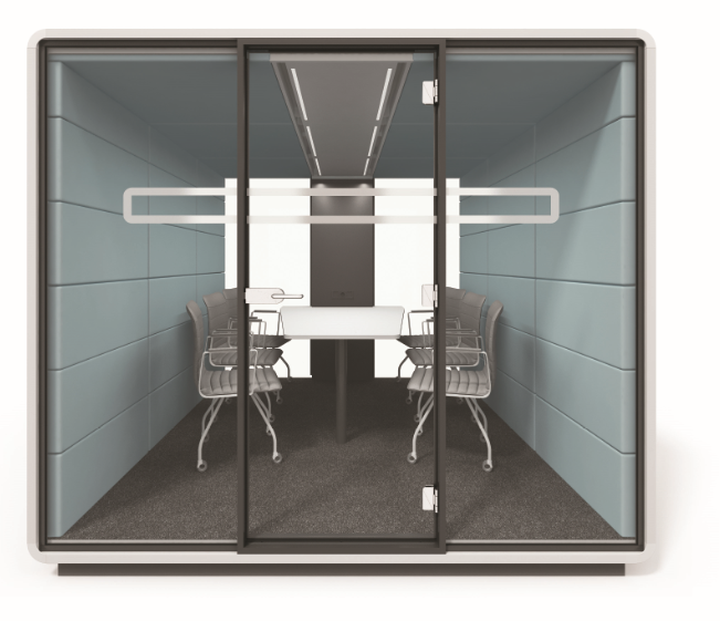Wiodącymi rozwiązaniami podczas Orgatec 2018 były systemy akustyczne, które można wykorzystywać na wiele różnych sposobów. Dobrym tego przykładem jest kabina Hush Meet L marki Mikomax Smart Office, jedyna tak duża kabina z klimatyzacją na rynku. Rozwiązanie to może stanowić przełom w projektowaniu akustycznych kabin, ponieważ jako jedno jedyne dostępne na rynku zawiera możliwość zainstalowania klimatyzacji. Producent pomyślał również o tym, w jaki sposób wykorzystać gromadzącą się z klimatyzacji wodą. Mianowicie razem w połączeniu z wertykalną ścianą można stworzyć system zamknięty, w którym skroplona woda będzie nawadniać rośliny. Kabina stanowi alternatywę dla standardowych sal konferencyjnych, zwłaszcza, że jej modułowy charakter pozwala na dopasowanie jej wielkości do naszych potrzeb i możliwości. Producent rekomenduje rozwiązania dla maksymalnie 10 osób, jednak największą popularnością cieszą się kabiny dla 5-6 osób. W przypadku takich rozwiązań jak Hush Meet L nie bez znaczenia jest jego mobilność, która znaczenie ułatwia proces reorganizacji przestrzeni biura czy przeprowadzki.