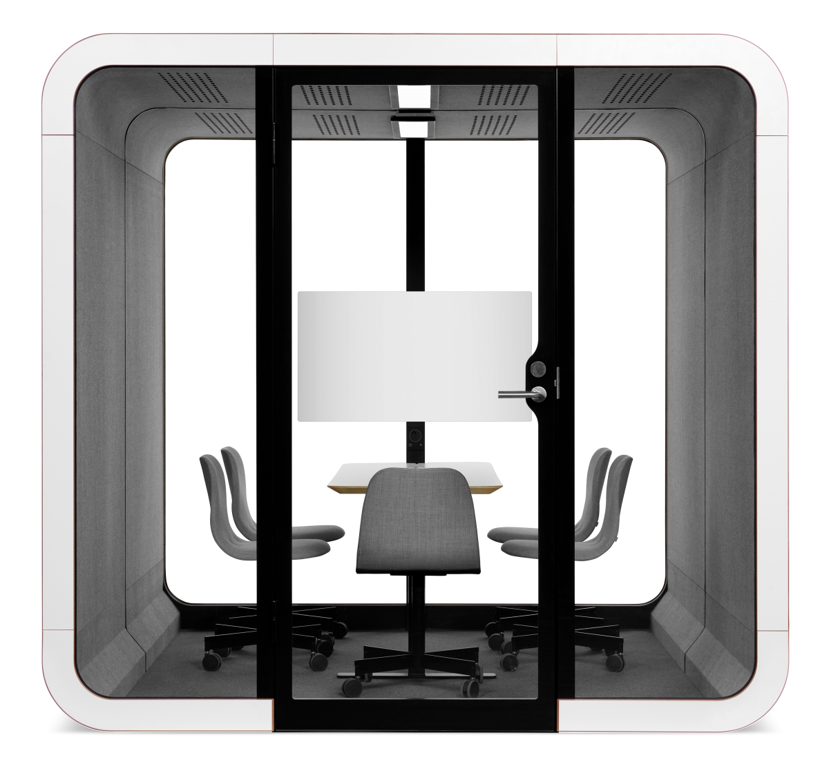 Bardzo wyraźnie było widać, że producenci skupili się na problemach i wyzwaniach, przed jakimi stoją obecne powierzchnie open space, a mianowicie na walce pracowników o własną przestrzeń i tożsamość. W odpowiedzi na te potrzeby, producenci zaprezentowali wiele rozwiązań akustycznych mających na celu izolowanie od męczących dźwięków i bodźców z zewnątrz. Finalnie pracownicy mogą czuć się mniej skrępowani, a bardziej kreatywni. Przykładem takich rozwiązań są akustyczne kabiny wyżej wspomnianej firmy Mikomax jak np. Hush Phone, gdzie możemy swobodnie rozmawiać przez telefon, bez obawy, że komuś przeszkadzamy czy ktoś nas słyszy, oraz Hush Work, w którym możemy szybko uporać się z zadaniami wymagającymi skupienia. Opisując tego typu rozwiązania, nie może zabraknąć fińskiej marki Framery, która pokazała np. 2Q – miejsce spotkań przeznaczone dla 4-6 osób z dwoma różnymi układami oraz kabinę O Video Conference Ready, pozwalającą wejść w dźwiękoszczelny świat wideokonferencji po zamocowaniu różnego rodzaju ekranów na ścianie kapsuły. Panel sterowania umożliwia regulację oświetlenia i przepływu powietrza. Z kolei firma Deblick pochwaliła się Cube Chat, który jest bardzo elastyczny, zapewnia pożądaną izolację w istniejących przestrzeniach, a w razie potrzeby można go przemieszczać.