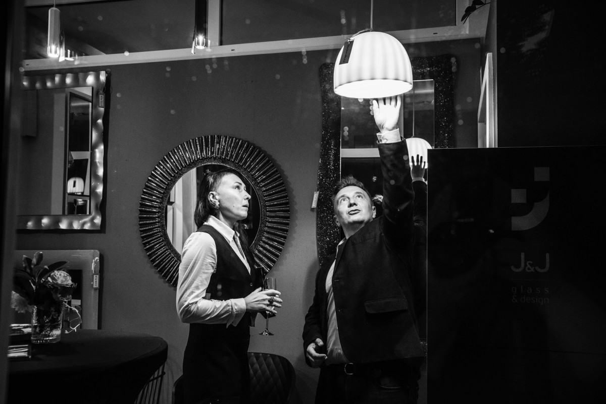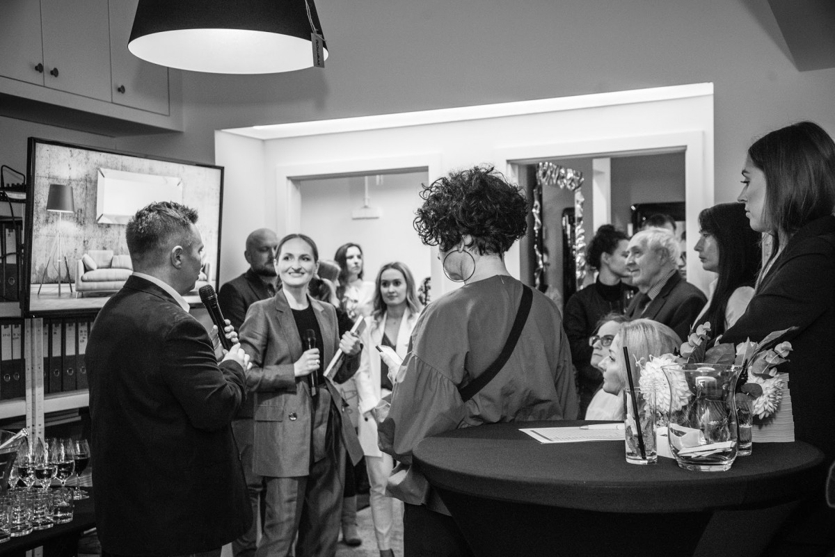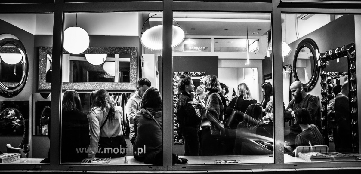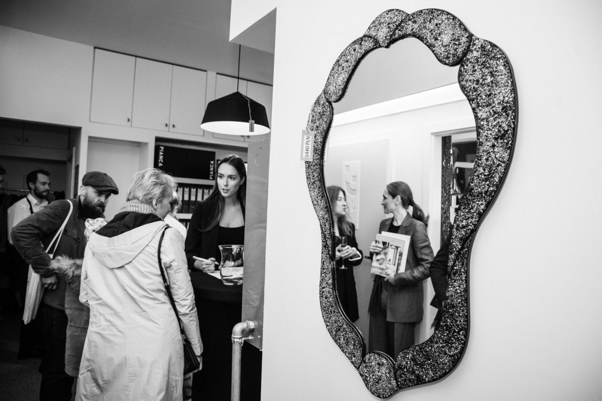 Wnętrze studio wypełniały nie tylko piękne lustra, ale również designerskie, włoskie krzesła Et al. i brytyjskie lampy Innermost. Zgromadzeni goście zachwycali się lustrami i chętnie dopytywali o najdrobniejsze szczegóły. Otwarciu towarzyszyły inspirujące dyskusje w kuluarach – oczywiście nie mogło zabraknąć rozmów o designie, architekturze wnętrz, ekologicznym wzornictwie i nowych technologiach. Doskonałej atmosferze towarzyszyła klimatyczna muzyka, pyszny poczęstunek z restauracji Kręgliccy oraz wyśmienite trunki.