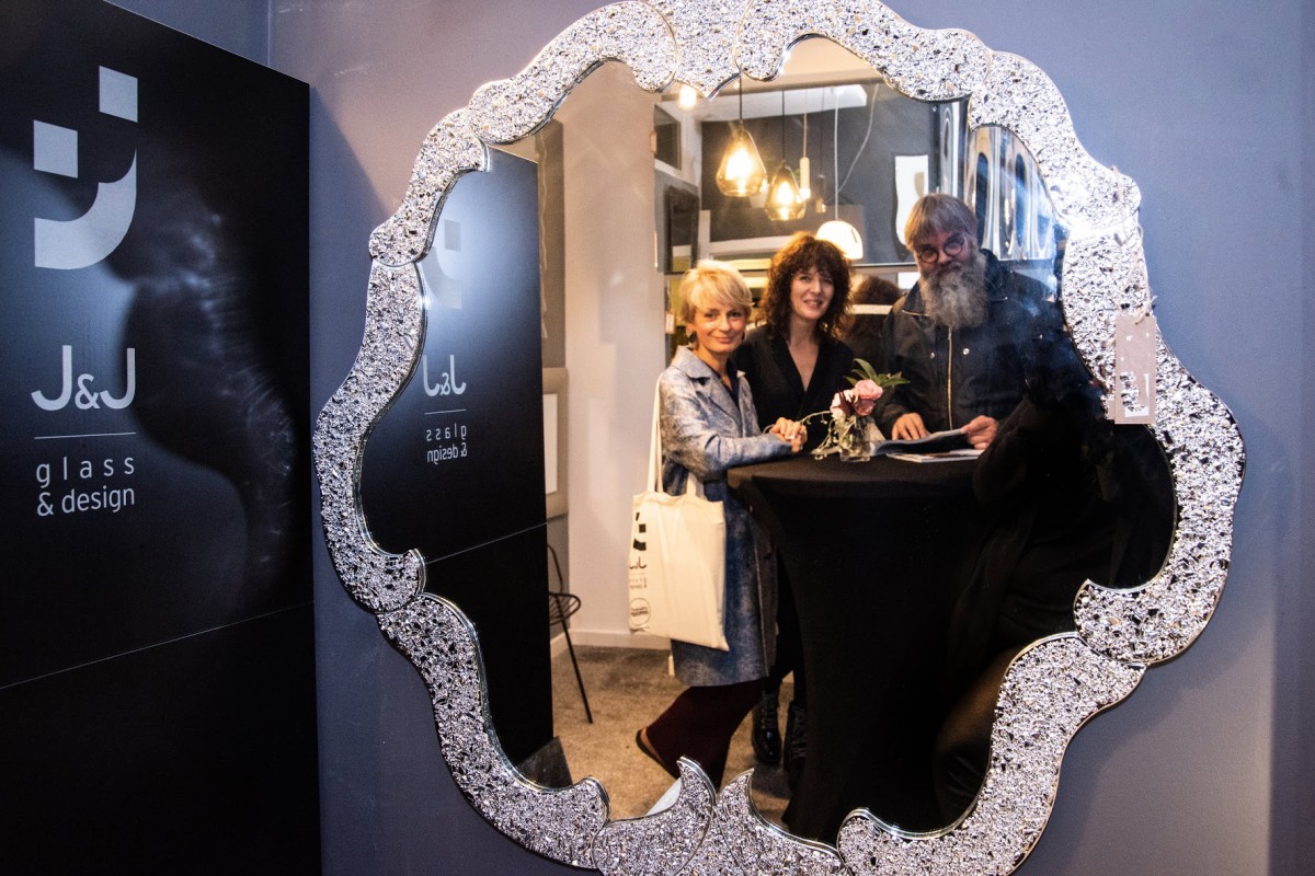 Klimatyczna przestrzeń CHŁODNA 11 CONCEPT zachwyca wyszukanymi lustrami. Otwarcie studio J&J glass & design pozwoliło zaproszonym gościom poznać z bliska ekskluzywne włoskie zwierciadła. Marka zajmuje się produkcją wyoblonego i odlewanego szkła od 1985 roku. W swojej ofercie posiada cztery linie produktów: płytki ścienne, lustra, meble łazienkowe z umywalkami i konsole. Każdy z nich rodzi się z symbiozy techniki przemysłowej, doświadczenia rzemieślnika z poszanowaniem ekologii.